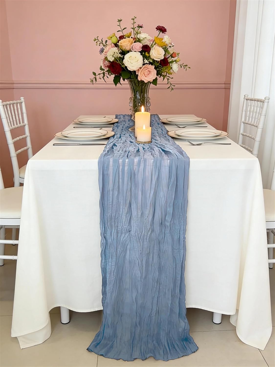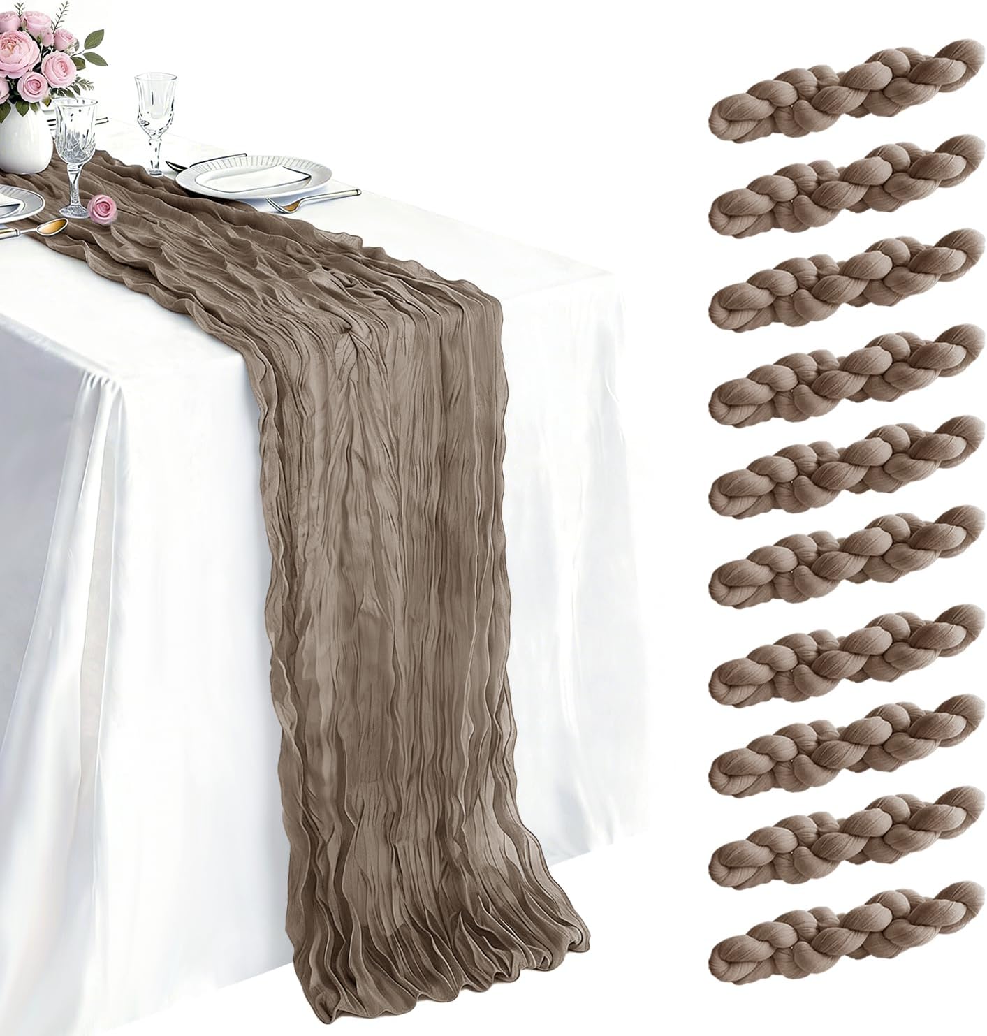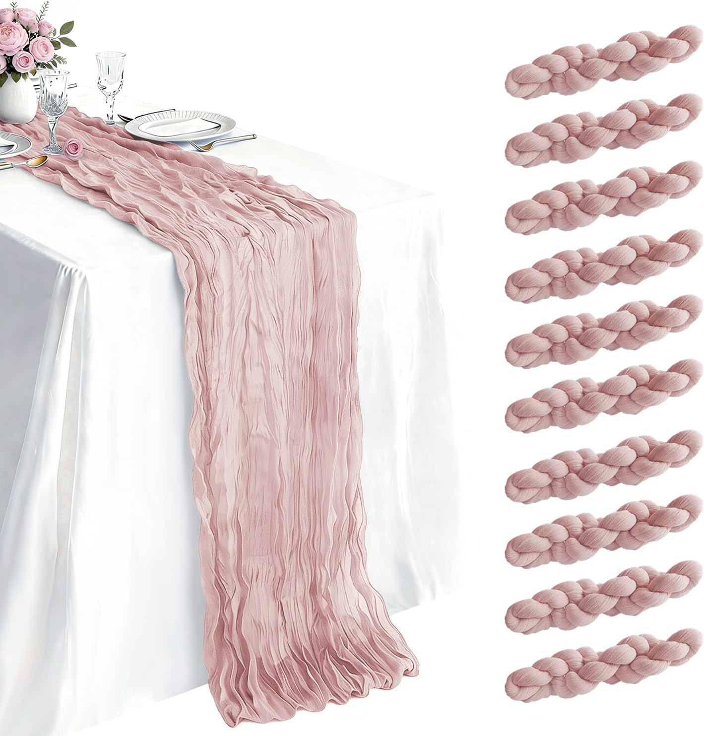 10 Pack Dusty Pink Cheesecloth Table Runner 35×120 Inch Gauze 10 FT Long Cheese Cloth Table Runners for Bridal Wedding Party Baby Shower Holiday Birthday Home Easter Decor