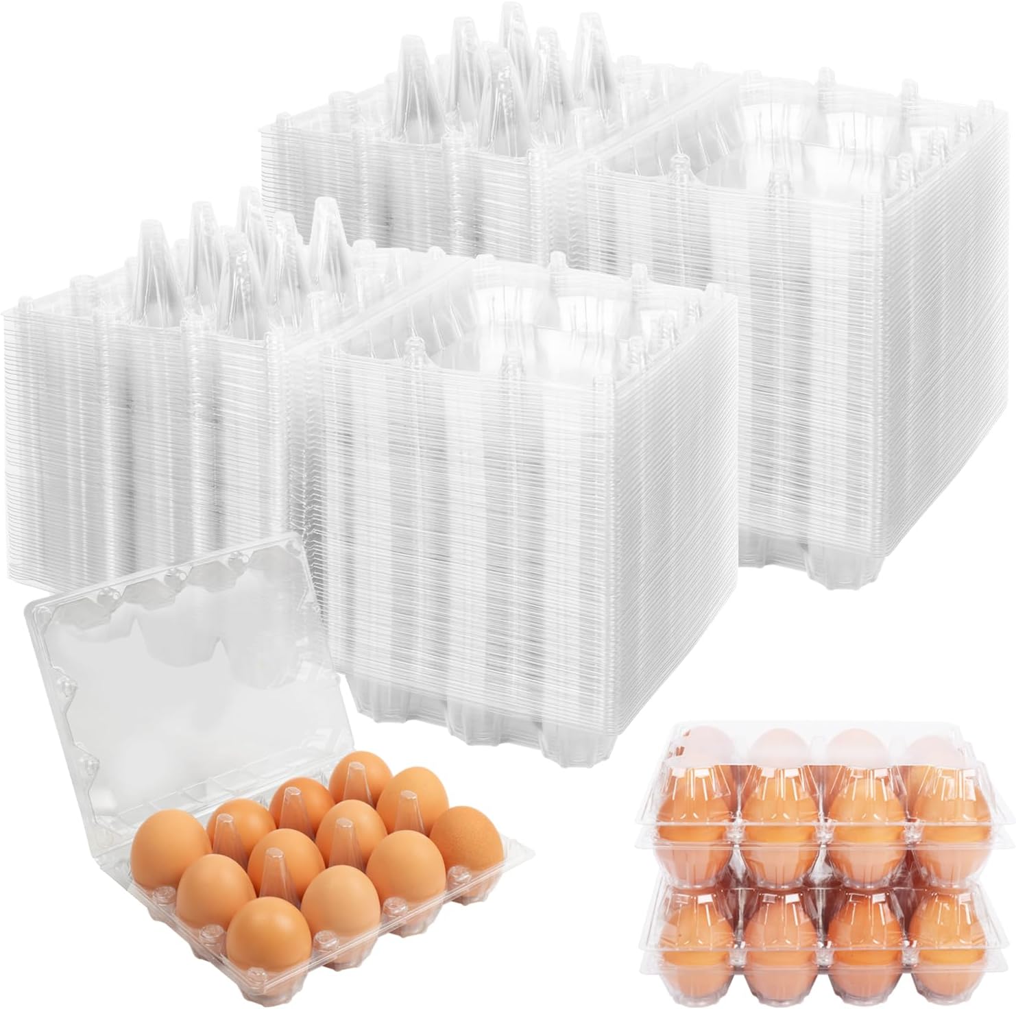 120 Pack Clear Egg Cartons Holds 1 Dozen Eggs, Blank Egg Cartons for Chicken Eggs, Reusable Egg Carton for Home Ranch Chicken Farm, Commercial Market DisplayFeatures: ● Premium quality PET plastic material, clear, lightweight, strong and durable, also recyclable and ecologically friendly. ● Lock design, thicken egg base design with shockproof plastic pillar, gives your eggs a comprehensive protection. ● Stackable plastic egg holder, remains good when stack together, perfect for daily use and refrigerator. ● Ideal for farmers stands, roadside stands, hobby farm, family pasture chicken farm, business market display and storage.