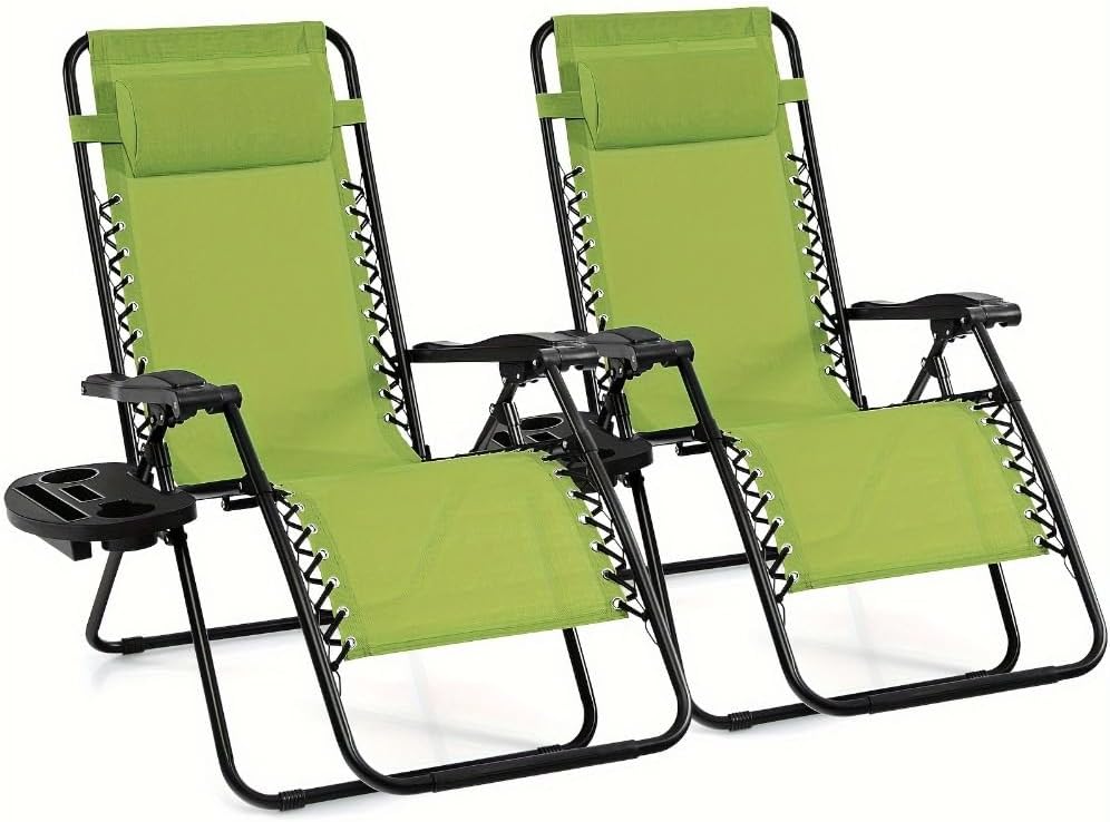 Experience ultimate relaxation with our premium zero gravity chairs, perfect for beach outings, poolside lounging, or cozy indoor spaces. Designed for comfort and portability, these chairs seamlessly fold to fit in your car trunk, making them an ideal travel companion for any adventure. The ergonomic headrest, coupled with high-elastic bungee ropes, offers exceptional support, allowing you to unwind for hours.Adjustability is key; our chairs feature a user-friendly locking system that allows you to recline from 0 to 160 degrees, ensuring you find the perfect angle to suit your needs—whether you're reading a book, enjoying a cool drink, or simply soaking up the sun. The included removable tray can be easily attached to either side of the chair, providing a convenient spot for your essentials.Crafted from durable steel and soft fabric, each chair supports up to 310 lbs, ensuring stability without compromising comfort. With an unfolding dimension of 40"-57" x 25" x 34"-42.5" and a compact folding size of 25" x 5" x 35", these chairs are designed to be both spacious and easy to store.This set includes two chairs, two headrests, and two trays, making it perfect for sharing leisure moments with family and friends. We prioritize your satisfaction and are committed to addressing any inquiries within 24 hours. If you're not completely satisfied within 32 days, feel free to request a full refund or replacement. Enjoy unparalleled comfort and quality at an exceptional value with our zero gravity chairs!