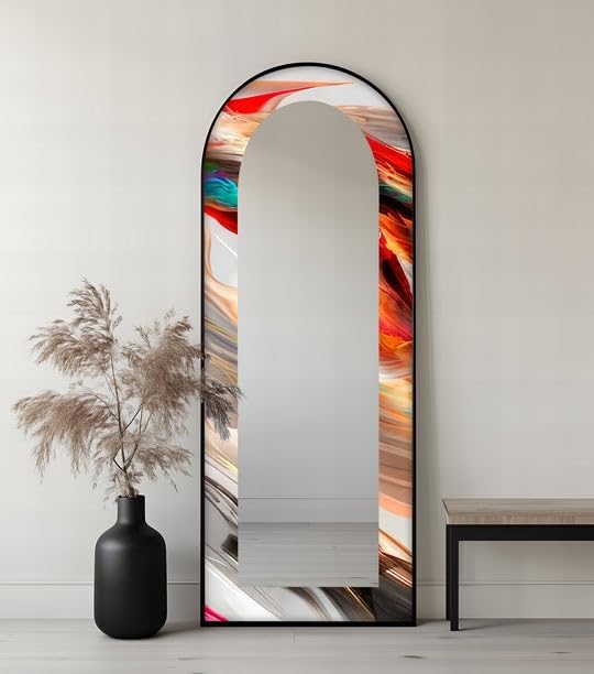Arch Shaped Floor Mirror with Metal Frame – Gold, Black, or Silver | Leaning, Standing, or Wall-Mounted Full Body Mirror Add artistic charm and functional elegance to your space with our Arch Full Length Mirror, designed to make a bold statement in any room. Whether styled in a bedroom, hallway, or living room, this arched floor mirror enhances your interior with timeless beauty. The edges of the mirror consist of pictures in the colors of your choice printed on tempered glass using the UV printing technique. The mirror itself is mounted on top of this printed tempered glass, giving it a vibrant, durable, and luxurious finish that stands out in any setting. Measurements; TOTAL SIZE (Uv Printed Tempered Glass + Mirror) : 23,5’’W x 67’’ H ONLY MIRROR SIZE : 17’’W x 60,5’’ H Choose from three premium frame finishes—Arch gold mirror, sleek black, or arch floor mirror silver—and enjoy flexible use as a Standing Floor Mirror, Arched Wall Mirror, or casually leaned for a designer look. This is more than a Full Body Floor Mirror with Stand—it’s a piece of functional art. Multiple Placement Methods, This arched floor mirror comes with a U-shaped bracket, which you can freely place in the living room or bedroom. For your convenience in hanging on the wall, special hangers are designed on the back of the mirror.Our premium mirrors are crafted by gluing 4mm tempered glass to a 4mm mirror, combining durability and style. The tempered glass features UV printing for a glossy, vibrant look, while both the glass and mirror have smooth, grinded edges for safety. The hidden metal hanger ensures a sleek, ready-to-hang design, making it an elegant and functional addition to any room.