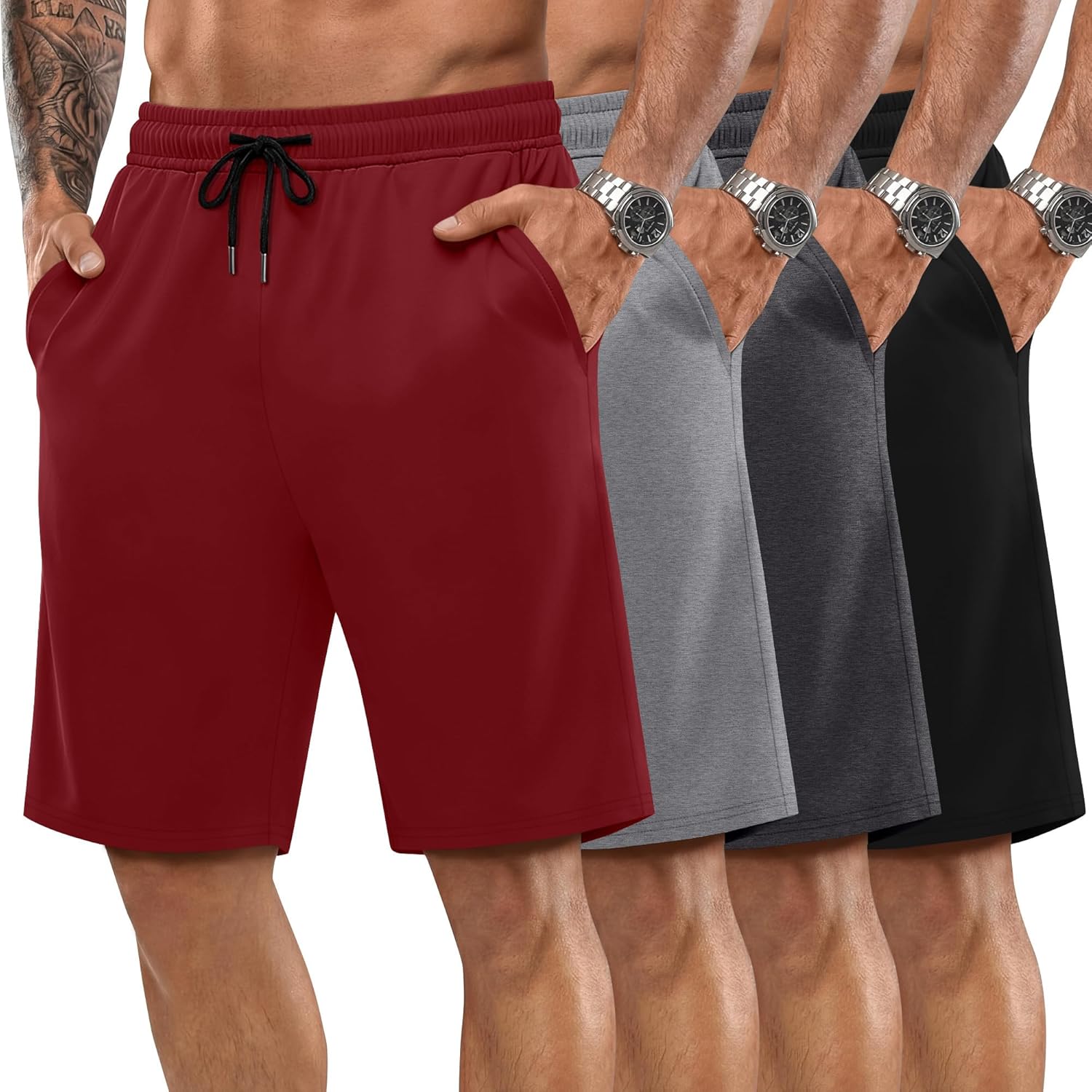 Features: Our mens active shorts can keeping cool, comfy and dry in intense workouts and also good for home casual wear. You can pair them daily with your favorite sports tops, casual tops and t shirts. Easy to manage daily wear and create a casual or sporty style. The half pants design effectively prevents accidental exposure. Our mens gym shorts with pockets are available in different sizes: Small, Medium, Large, X-Large, XX-Large. To find the suitable and comfortable size for you, we recommend that you check our size chart before ordering. Material: 95% Polyester, 5% Spandex Package includes: 4 X Mens Active Shorts Notes: Manual measurement, please allow slight errors on size. The color may exist a slight difference due to different screen displays