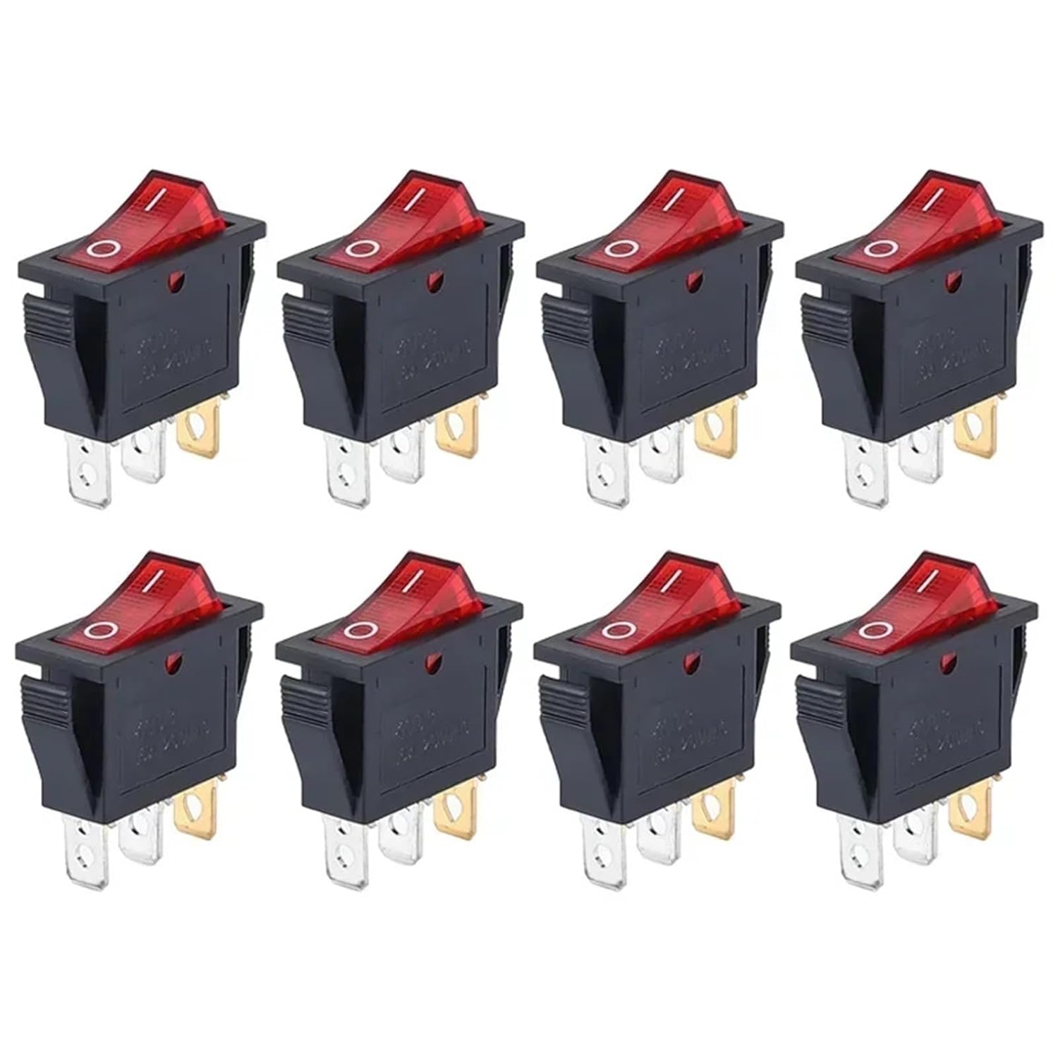 8Pcs KCD3 Rocker Switch Boat-shape 3 Pin Electrical Equipment Power Switch ON-OFF Toggle Switch with LED Light/Red Dot==========High-concerned chemical : NoneMaterial : PlasticItem Type : SWITCHESOrigin :