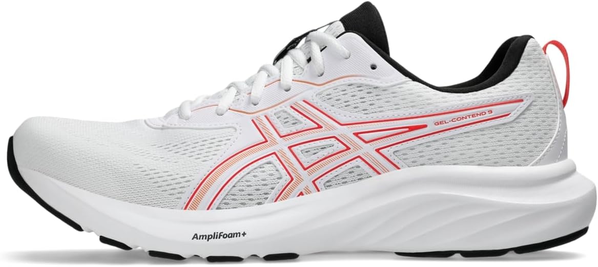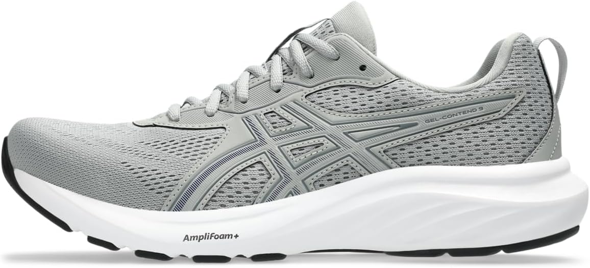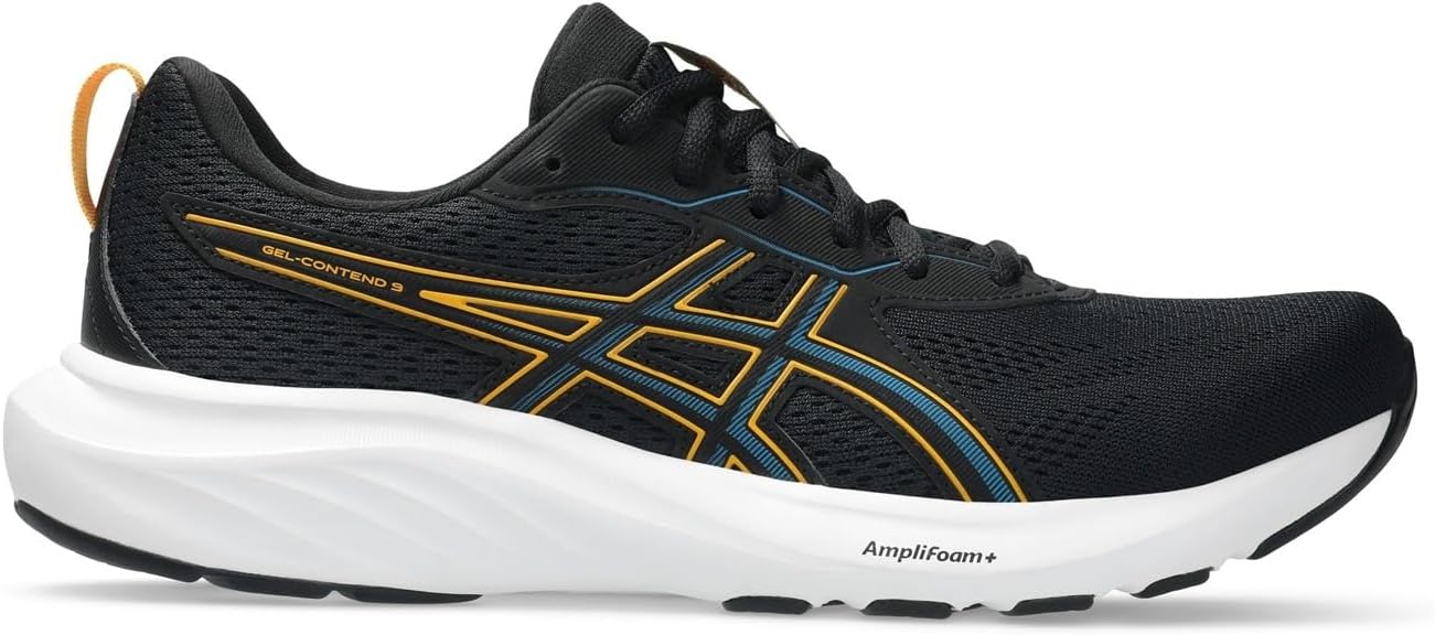 Dominate the track or the streets in style and confidence wearing ASICS Men's GEL-Contend 9: where style meets performance. Crafted with a sleek polyester upper and lining, lace-up closure, and Ortholite Sockliner for unparalleled step-in comfort. Glide effortlessly with AMPLIFOAM cushioning for durability, while Trusstic Technology ensures stability with every stride. The rearfoot GEL technology cushions impact, offering a softer footstrike. Improved airflow with a jacquard mesh upper and reinforced support with synthetic rubber outsole stitching overlays.