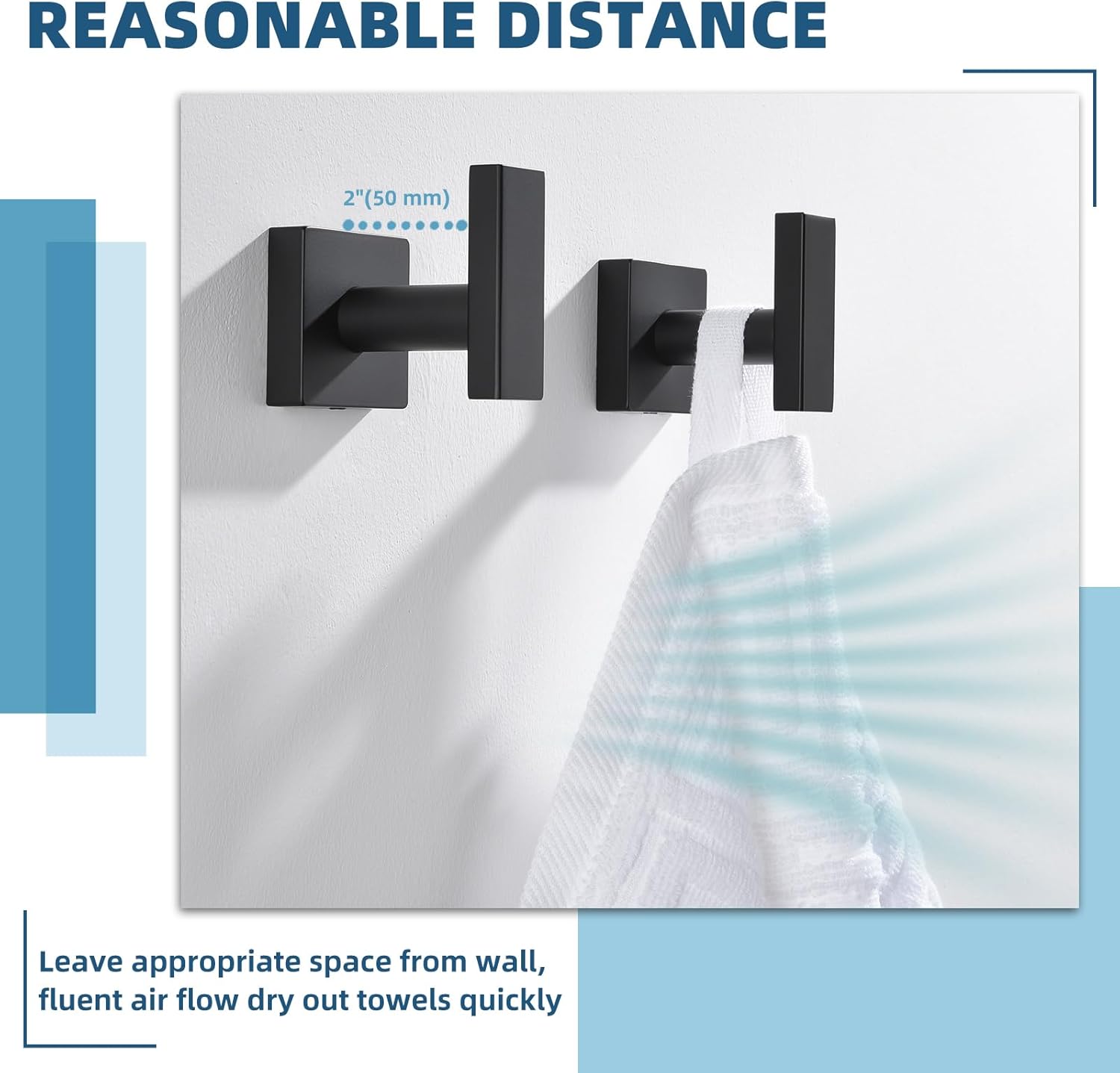 Finish: Matte BlackMaterial: Stainless SteelInstallation Method: Wall-mountedBATH ROBE HOOKDimensions: L 1-3/4" x D 2-3/8" x H 2-1/4" (44 x 60 x 57 mm)Net Weight: 0.22 lb (102 g) per hookTOILET PAPER HOLDERDimensions: L 12" x D 5-5/16" x H 3-3/8"(305 x 135 x 85 mm)Net Weight: 2.05 lb (928 g)CARE AND MAINTENANCE1.ONLY clean with a soft, damp cloth gently.2.DO NOT USE detergents as they may harm the protective finish of your bath accessories.3.Maintenance period is 1-2 months, this care will maintain the metallic gloss finish.WARM PROMPT1.NOTE: All photography props are NOT included in the package.2.Manual measure may occurs a little dimension deviation, please in kind prevail.3.Due to light influence and display resolution, pictures and objects may have slightly color aberration.