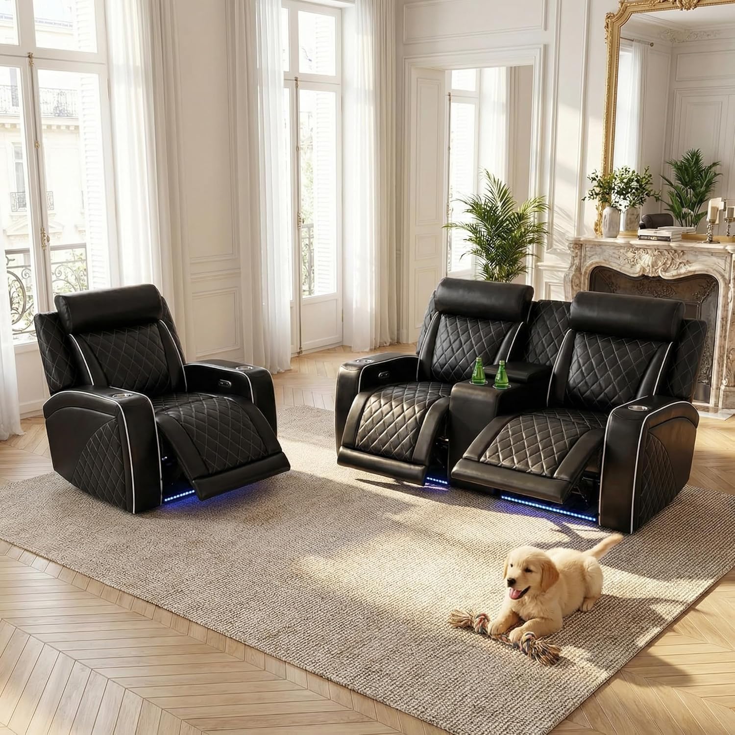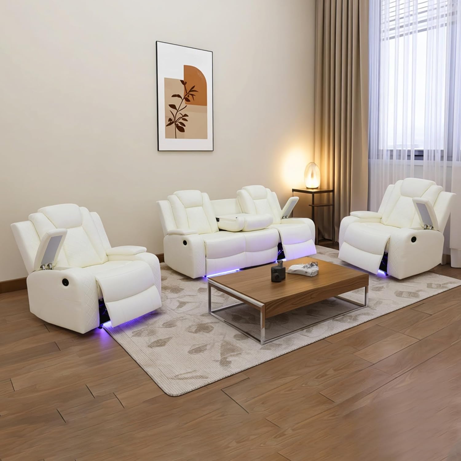 | Additional Features | Charging Ports, Cup Holder, LED Lighting, Power Recliner, Storage Armrests |