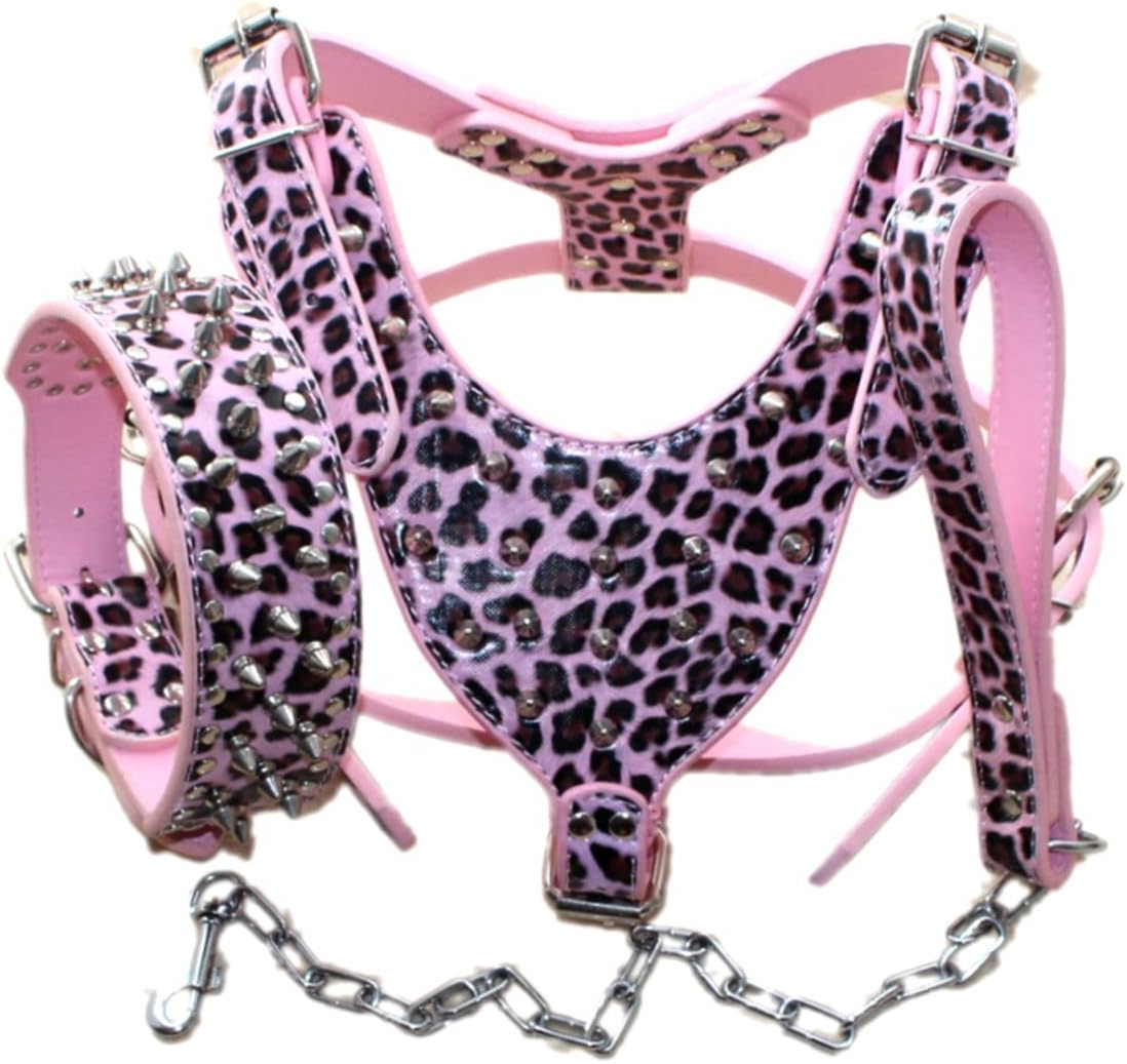5 holes adjustment, Strong and durable. This Harness is made of mixed leather,strong enough,skin friendly to your pet.Harness size:Neck size 45-60CM(17.5-23.5 inches), Chest size 65-85CM(26-34 inches)Collar size:M:Neck size for 17-20 inches(43-51cm)L:Neck size for 19-22 inches(48-56cm)XL:Neck size for 21-24 inches(53-61m)Leash Size:28 inches(70cm) total length Chain:5mm diameter,20 inches(50cm) length(include the hook). Hand strap:1 inches(2.5cm)width,8 inches( 20cm) length.