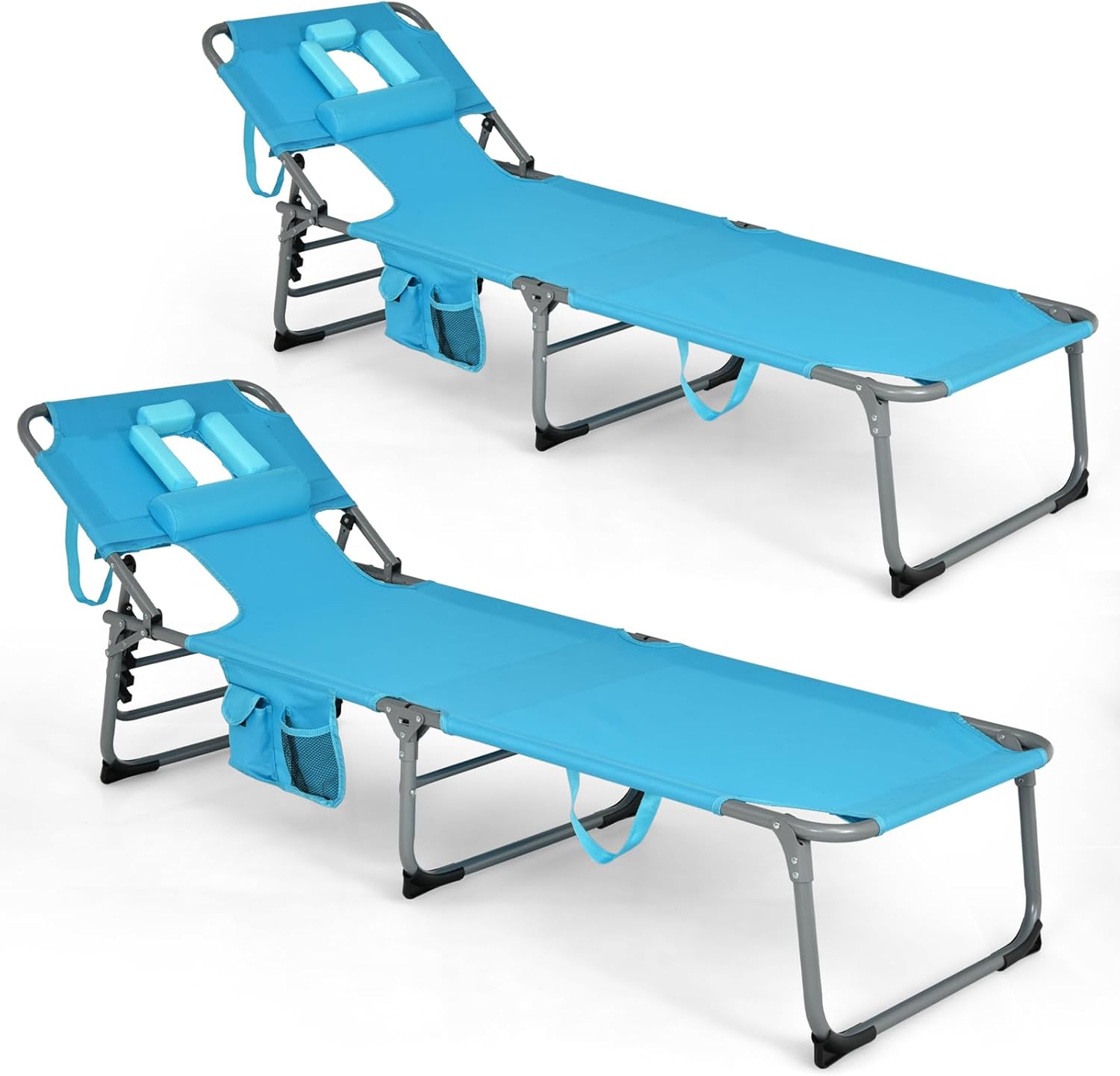 | Model Name | COSTWAY Folding Beach Lounge Chair, Tanning Chair with Face Hole, 5-Position Adjustable Backrest, Pillow & Side Pocket, Foldable Chaise Lounge Chair Outdoor |