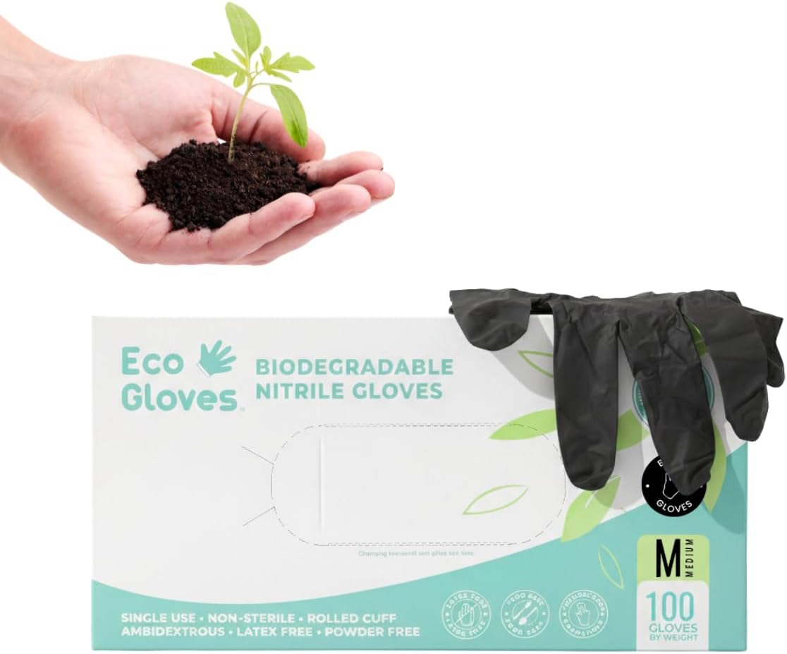 Eco-Friendly Protection in Sleek Black – Eco Gloves Biodegradable Black Nitrile Disposable Gloves | Protect your hands—and the planet—with Eco Gloves Biodegradable Black Nitrile Gloves. Designed with our proprietary Accelerated Biodegradable Technology (ABT), these gloves offer the same strength and performance as traditional nitrile gloves, but break down in landfills within 1–3 years instead of decades. Made for professionals and conscious consumers alike, these durable 4 mil gloves provide superior grip, flexibility, and all-day comfort. **Why Choose Eco Gloves Biodegradable Black Nitrile Gloves?** Crafted from premium nitrile material, these gloves are built tough for demanding tasks while remaining lightweight and easy to wear. The 4 mil thickness offers reliable puncture, tear, and chemical resistance, while textured fingertips enhance grip and precision—even in wet or oily conditions. Ideal for use in food prep, beauty, automotive, janitorial work, and household cleaning, they deliver dependable protection without compromising the planet. **Key Features:** * Accelerated Biodegradable Technology (ABT) – Breaks down in landfills 10x faster than traditional nitrile gloves. * 4 Mil Durable Nitrile – Offers excellent strength and elasticity for a wide range of tasks. * Textured Fingertips – Improves grip and tactile sensitivity for detailed work. * Powder-Free & Latex-Free – Safe for users with latex allergies and sensitive skin. * Sleek Black Finish – Professional and stylish for beauty, food service, and industrial settings. * Eco-Conscious & Responsible – Same 3-year shelf life as standard nitrile gloves with no compromise in performance. **Perfect For:** * Food Prep & Catering – Safe for food handling. * Beauty & Salon Pros – Great for hair color, nails, waxing, and more. * Auto & Shop Work – Durable enough for grease, grime, and tools. * Cleaning Crews & Households – Keep hands protected from harsh cleaners and messes. What’s Included: Each purchase includes 1,000 gloves (10 boxes of 100 gloves per box) to keep your operations running efficiently and sustainably. - Choose better. Choose Eco Gloves. Make the switch to Eco Gloves Biodegradable Black Nitrile Gloves for premium performance that protects both your hands and the environment. - NOT FOR MEDICAL USE