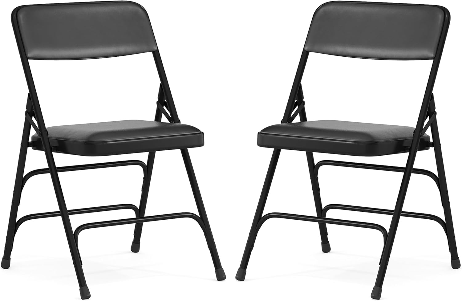 Host Thanksgiving at your house and leave out "bring your own chair" on the invite we've got you covered with these padded folding chairs. These heavy-duty metal folding chairs are built for commercial businesses who host a myriad of events and need to accommodate people of varying sizes. Portable chairs are ideal in community centers to transport from storage to venue floor. Change the scenery with these outdoor metal chairs by taking the party outside. Take care of your chairs so they last you many years by storing indoors. Its 18-gauge curved steel frame is triple braced with leg strengthening support bars to hold up to 300 pounds while the non-marring floor glides protect your flooring from scuffs and scrapes. Celebrate all family events at your home for guests to sit comfortably atop these upholstered folding chairs. These chairs come assembled to be of service as soon as they're delivered.
