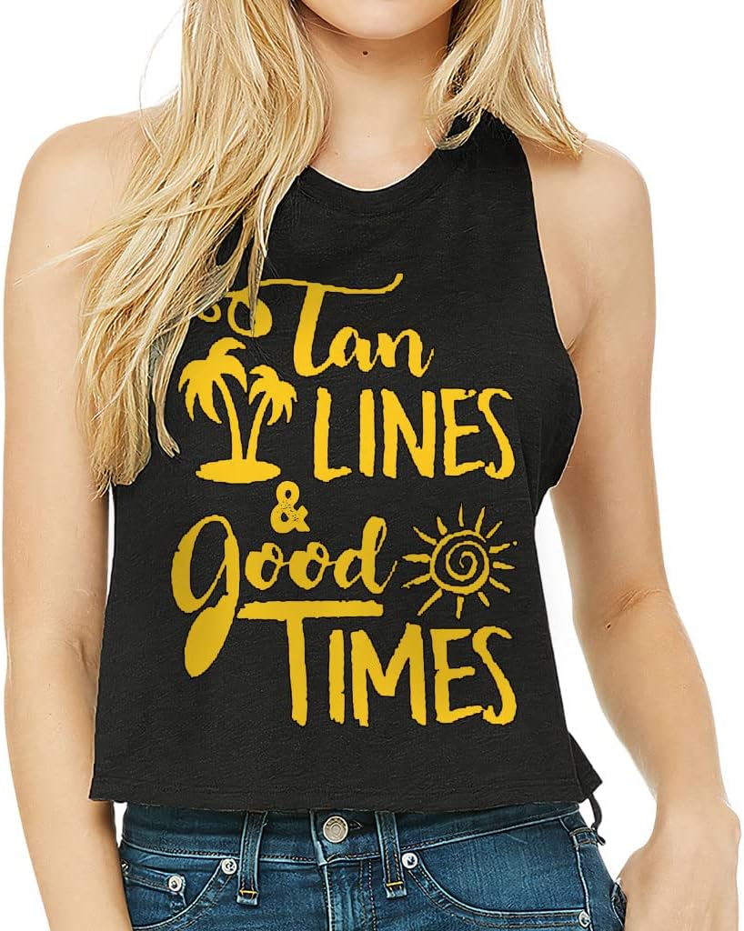 Cute and flattering Good Times and Tan Lines Racerback Cropped Tank is suitable for most indoor or outdoor activities, such as gym, yoga, running, hiking, beach or relaxing around the house. Pair Palm Tree Women's Tank with your favorite sports bras, especially strappy ones, and high-waisted leggings, then you will enjoy cool and comfortable exercise throughout the summer.