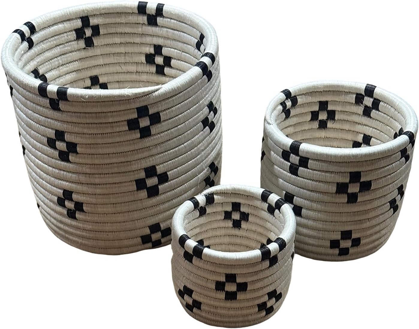 Elevate your indoor space with this Set of 3 Handwoven African Planter Baskets, masterfully crafted from durable, eco-friendly sisal fiber. These authentic baskets bring a touch of African artistry and natural texture into your home, seamlessly blending functionality with unique design. Perfect for use as plant pot covers, vases, home decor accents, or storage organizers, each basket is carefully woven by skilled artisans to reflect traditional techniques passed down through generations. Ideal for minimalist, boho, rustic, or Zen-inspired interiors, these decorative baskets are versatile enough to complement any space from living rooms and bedrooms to entryways and bathrooms. Use them to hold indoor plants, dried floral arrangements, or household essentials like keys, remotes, and cosmetics. Whether you're styling a shelf, dressing up your plant pots, or looking for sustainable storage solutions, this artisan basket set offers timeless beauty and practical charm.