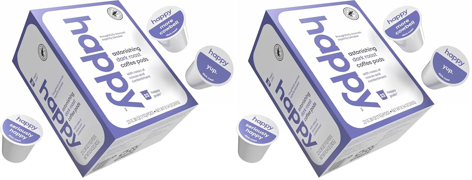 let's coffee. happy coffee pod blends are slow roasted for more complex notes, char-free taste and ultimate smoothness. now that’s happy. our 100% arabica beans are responsibly grown and harvested in Central and South America, then carefully roasted for a rich, bold, smooth cup, every time. allowing our coffees more time in the roaster creates more complex notes, and avoids the harsh, charred flavors common in other coffees. that’s why our coffees taste like they should cost a lot more than they do. our k cup pods are perfect for those single serve brew mornings (but we get it if you go for a second cup). explore our full line of happy, including ground and whole bean coffee, instant coffee packets, pods, lattes and cold brew. happy pods are proudly rainforest alliance certified.