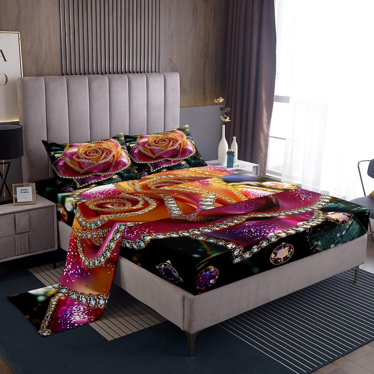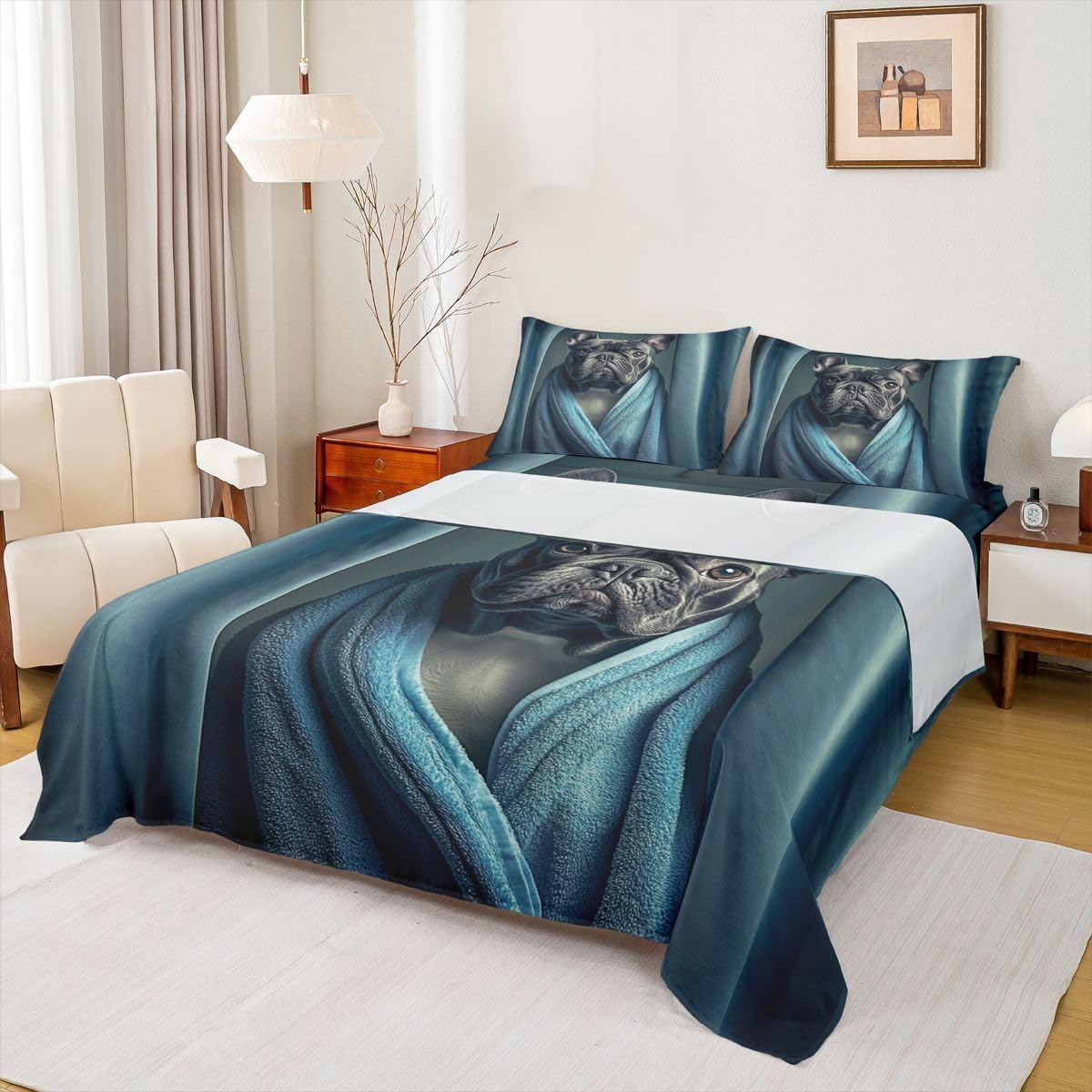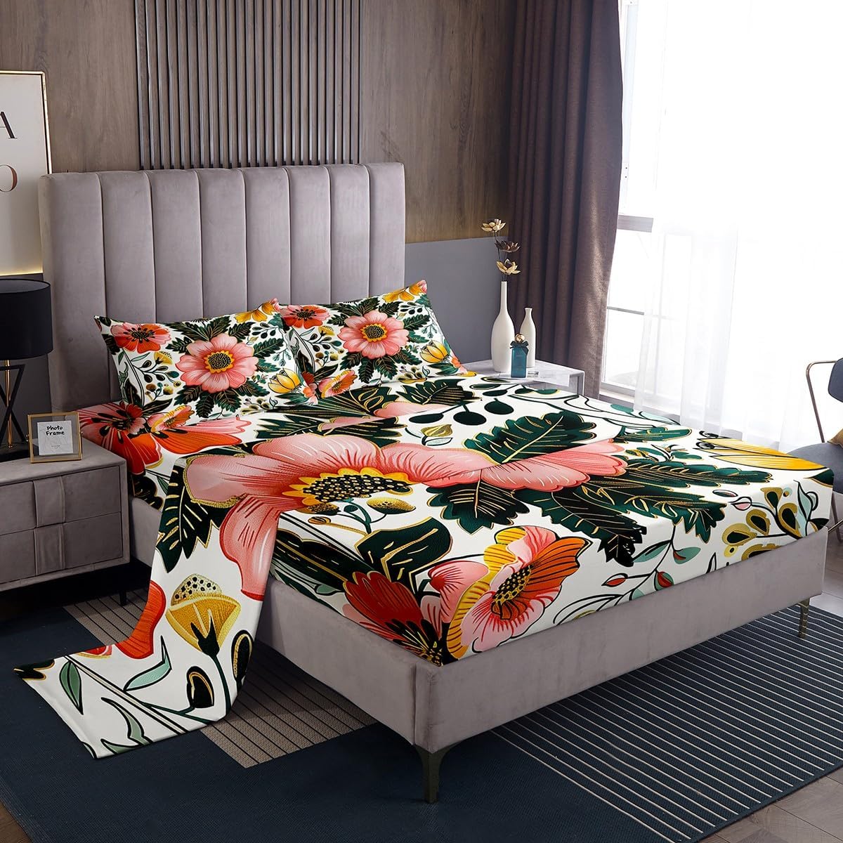 Our bed sheet is made of polyester fabric, lightweight and soft; stylish design is very suitable as room decoration for boys and girls; keep warm in winter and cool in summer; create a comfortable sleeping environment to make you fall asleep all night Range of size 1 twin fitted sheet 39 inch x 75 inch x 16 inch and 1 twin flat sheet 66 inch x 96 inch and 1 standard pillowcase 20 inch x 30 inch 1 full fitted sheet 54 inch x 75 inch x 16 inch and 1 full flat sheet 81 inch x 96 inch and 2 standard pillowcase 20 inch x 30 inch 1 queen fitted sheet 60 inch x 80 inch x 16 inch and 1 queen flat sheet 90 inch x 102 inch and 2 standard pillowcase 20 inch x 30 inch 1 king fitted sheet 78 inch x 80 inch x 16 inch and 1 king flat sheet 90 inch x 106 inch and 2 standard pillowcase 20 inch x 36 inch