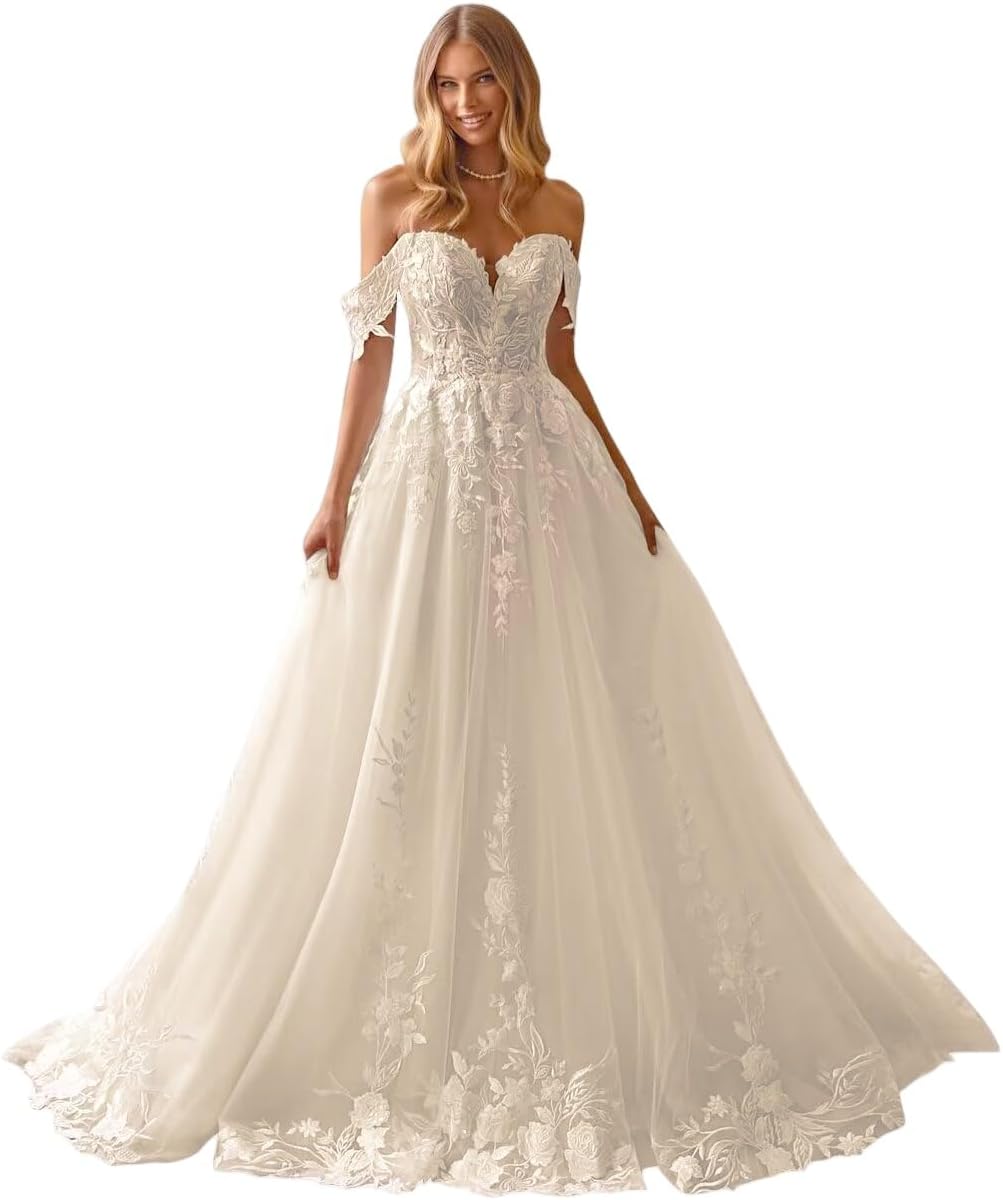 | Fabric Type | Long Off Shoulder V Neck Lace Applique A Line Wedding Dresses with Train |