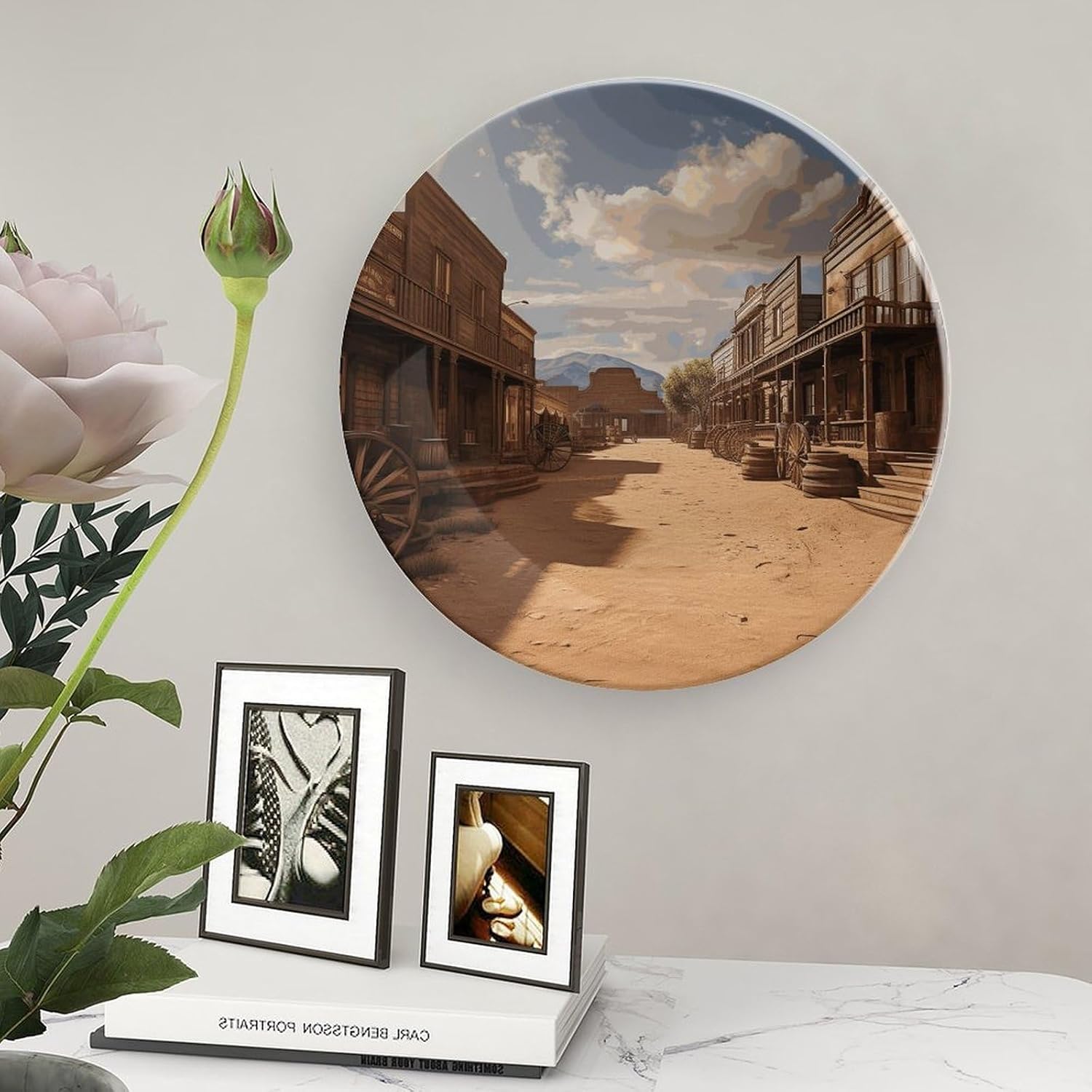Decorative Plate for Display, Bone China Decorative Plate, Ceramic Dinner Plate with Stand, Vertical Ceramic Plate for Home Office Kitchen Table/Wall Hanging Decor