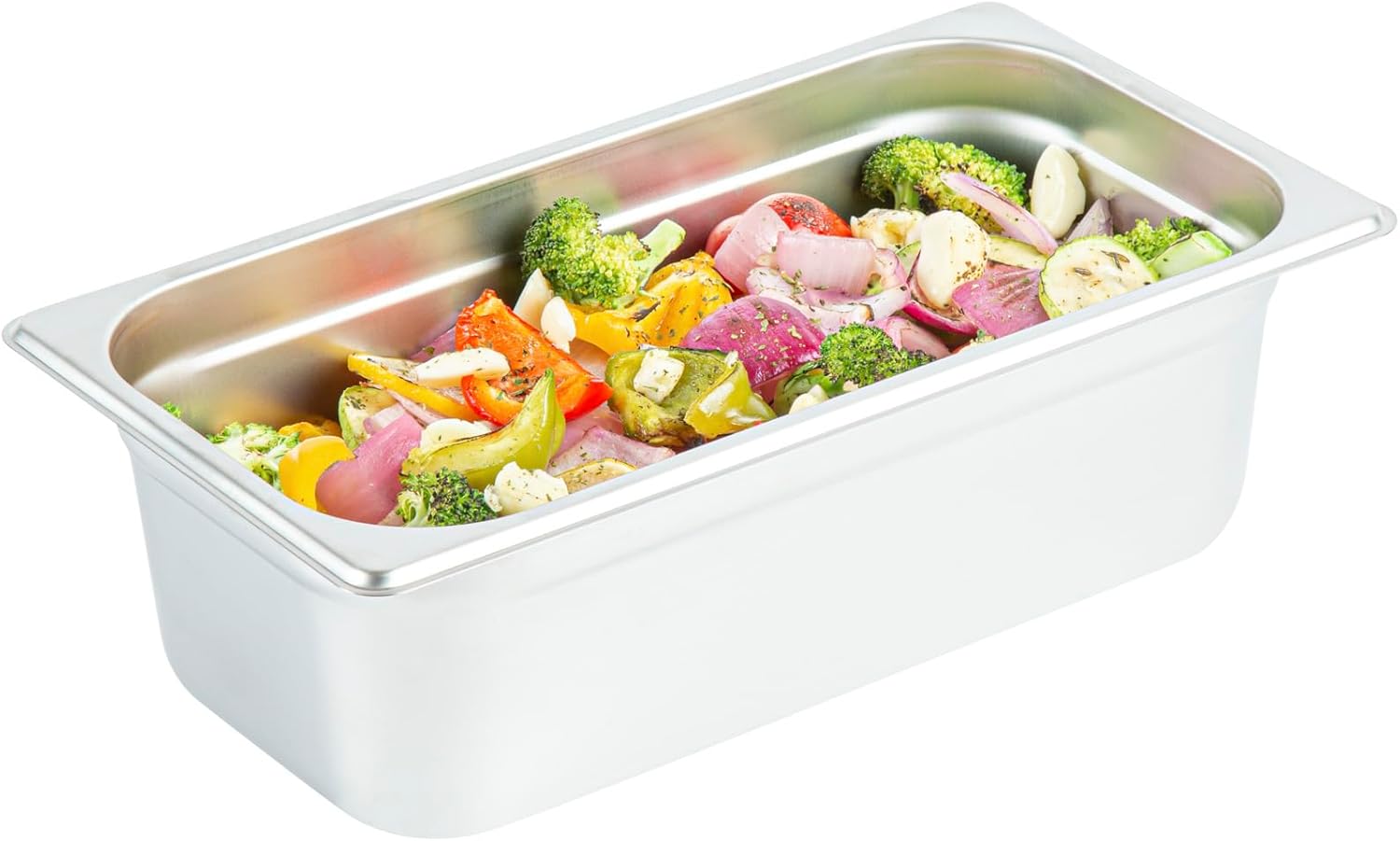 Elevate your culinary presentations with our Kitchen Tek Stainless Steel 1/3 Size Steam Table Pan. This steam table pan is engineered with an anti-jam stacking lug for easy storage and effortless access, ideal for fast-paced environments. Constructed from 24 gauge stainless steel, this hotel pan delivers premium durability against the daily demands of restaurant usage. Pair this buffet pan with its compatible lids (SKUs: RWT1612S-1 and RWT1620S-1) to ensure your preparations remain clean. Meeting NSF standards, this steam pan stands up to the stringent requirements in the foodservice industry. The generous 8-inch depth of this stainless steel pan allows for the preparation of substantial dishes, catering to varied gastronomic needs while maintaining an elegant presentation. Featuring a robust construction, this metal buffet pan ensures durability and is ideal for serving a variety of hot and cold food options. Designed for oven use, this food steam table pan is built to withstand temperatures up to 1600F. This stainless steel catering pan is freezable, enabling you to store your prepared meals for later use. For easy post-service cleanup, this durable pan is compatible with commercial dishwashers. This metal catering pan measures 12.8 inches in length by 6.9 inches in width by 8 inches in depth. Sold in a 1 count box. Lids are available and sold separately.