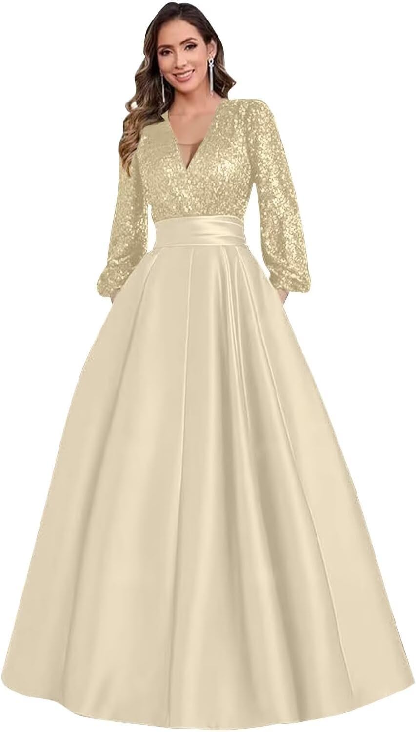 Welcome to "ALLENIDIA", we offer wedding dresses for women, Bridesmaid Dresses, semi-Bridesmaid Dresses, wedding dresses and other special occasion dresses, please feel free to purchase, we will be happy to serve you. material:Sequin and Satin sleeves:Long Sleeve profile:A Line Length:Long length how to choose the size: measuring your body and comparing with our size table. If you would like a more accurate size, please send us your size as follows : 1. Bust___inches 2. Waist circumference 3.Hips___inches4.Hollow to floor ___inches 5. (don't wear shoes) _____ inches tall 6.The date you need the dress:____ How to contact us: Size Chart Measurements (INCH): Size 2: Bust =33.25 Waist =26 hip =36.5 Hollow to floor =58; Size 4: Bust =34 waist =27 hip =37.5 Hollow to floor =58; Size 6: Bust =35.25 Waist =28.25 hip =38.5 Hollow to floor =59; Size 8: Bust =36.5 waist =29 hip =39.5 Hollow to floor =59; Size 10: Bust =37.5 waist =30.25 hip =40.25 Hollow to floor =60; Size 12: Bust =38.5 waist =31.5 hip =42 Hollow to floor=60; Size 14: Bust =40 waist =33 hip =43.25 Hollow to floor =61; Size 16: Bust =41.75 waist =34.75 hip =44.5 Hollow to floor =61; Size 16W: Bust =43.25 Waist =36.5 hip =46.5 Hollow to floor=61; Size 18W: Bust =45.75 Waist =39.25 hips =48.5 Hollow to floor =61; Size 20W: Bust =47.25 Waist =41.5 hips =50.5 hollow to floor =61; Size 22W: Chest =49.25 Waist =43.25 hips =52.5 hollow to floor =61; Size 24W: Bust =51.5 waist =45.5 hips =54 hollow to floor =61; Size 26W: Bust =53.5 waist =47.75 hips =56.25 Hollow to floor =61. Size 28W: Bust =56 Waist =50.75 hip =58.75 hollow to floor =62.