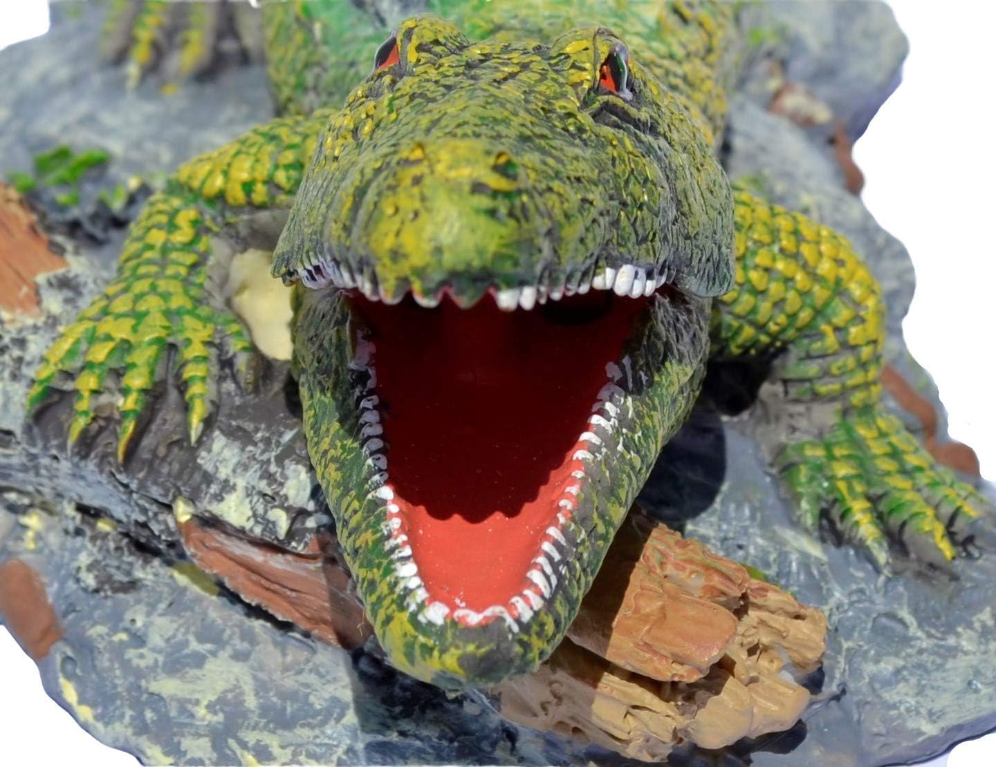 Air Operated Crocodile is the fully functioning Crocodile has the benefit of not only being a beautifully detailed Aquarium Ornament that enhance any aquarium but also once connected to an air pump assists in the aeration of the tank. As the air bubbles are realised the Crocodile mouth opens and then snaps shut. The ornament is made from high quality non toxic resin. Suitable for aquariums and fish tanks. Will provide a "wow" factor for the younger fish keepers.