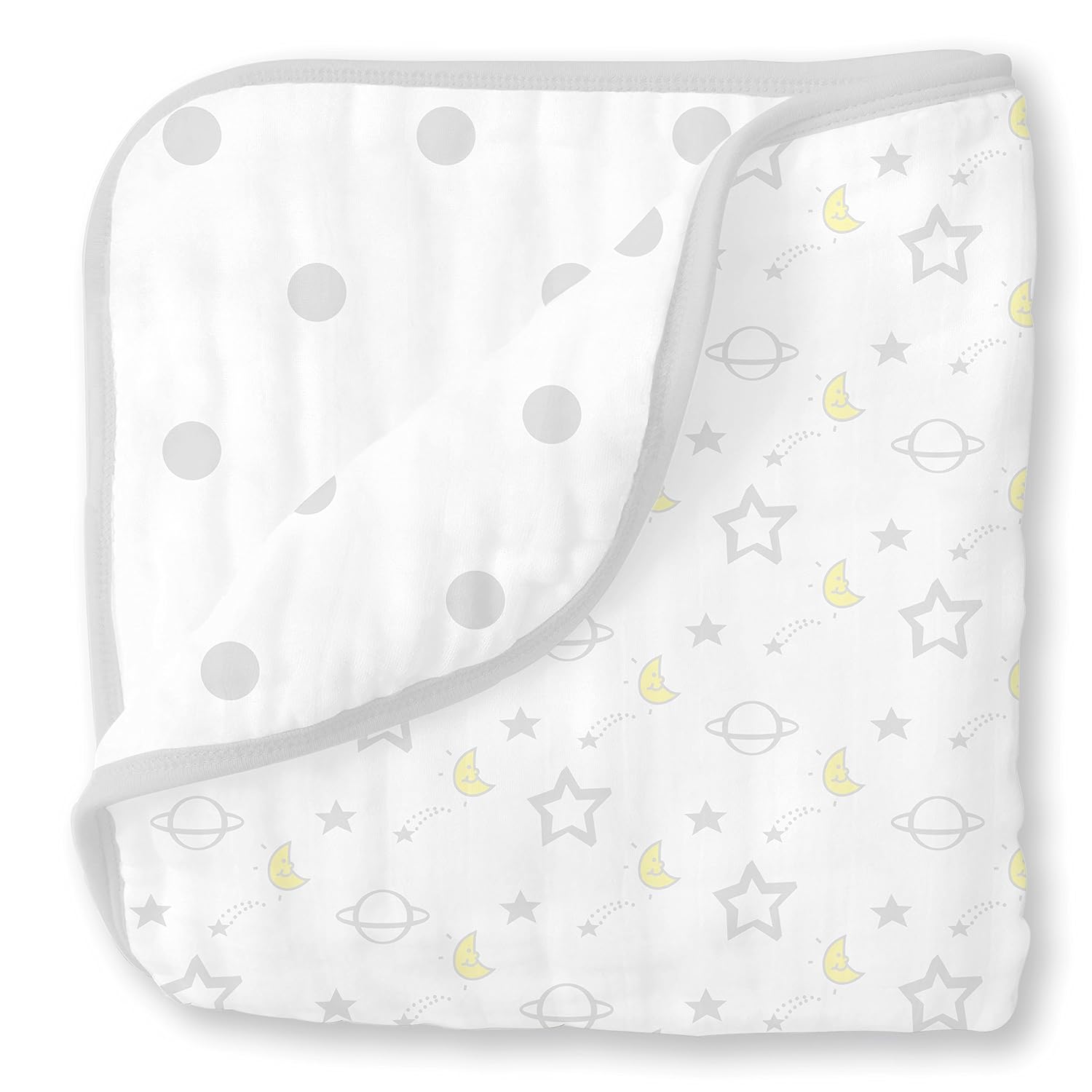 Luxuriously soft and cozy comfort for snuggle time, giggle time, quiet time, nap time and stroller time. SwaddleDesigns 4-Layer Muslin Luxe Blankets are reversible with two stylish prints and four layers of premium muslin fabric. These cozy blankets are perfect for a toddler or older child, but not intended for swaddling, due to the thickness. Our Luxe blanket is generously sized and large at 46 x 46 inches, and our quality muslin is pre-washed and gets softer with every wash. A favorite of style-seeking moms who desire both function and fashion. Coordinates with a variety of our quality baby essentials. Machine wash gentle. Made with love for the little one you love.