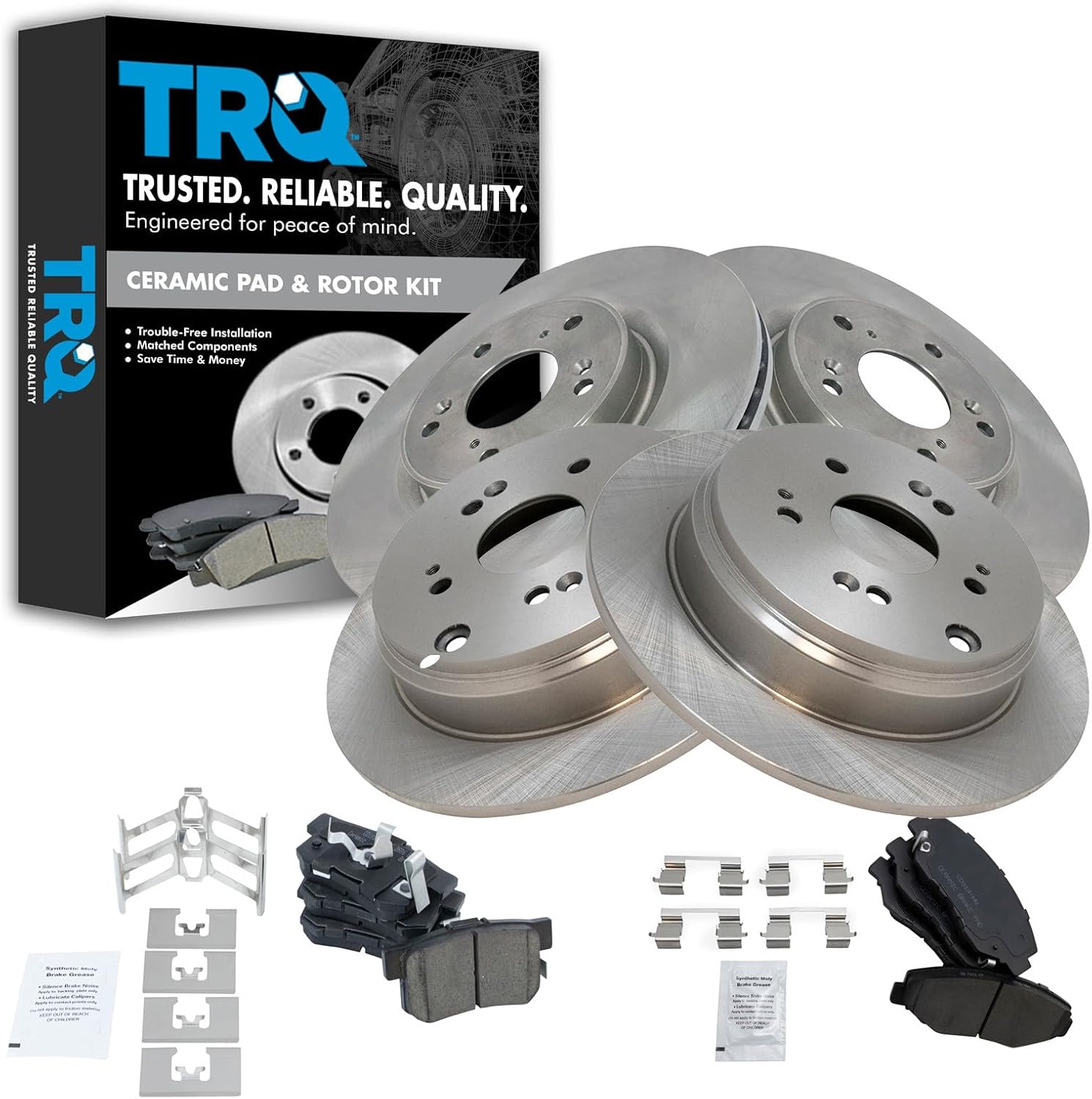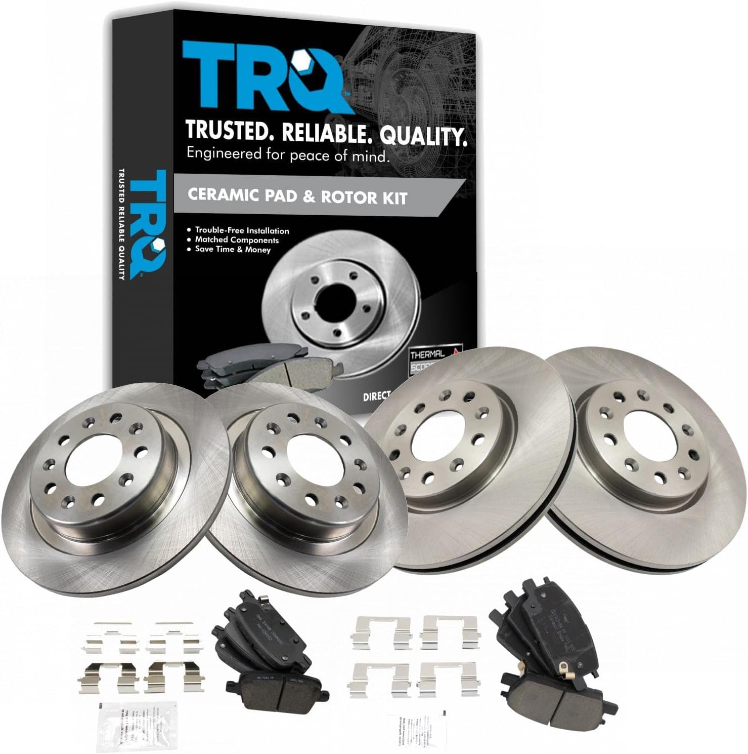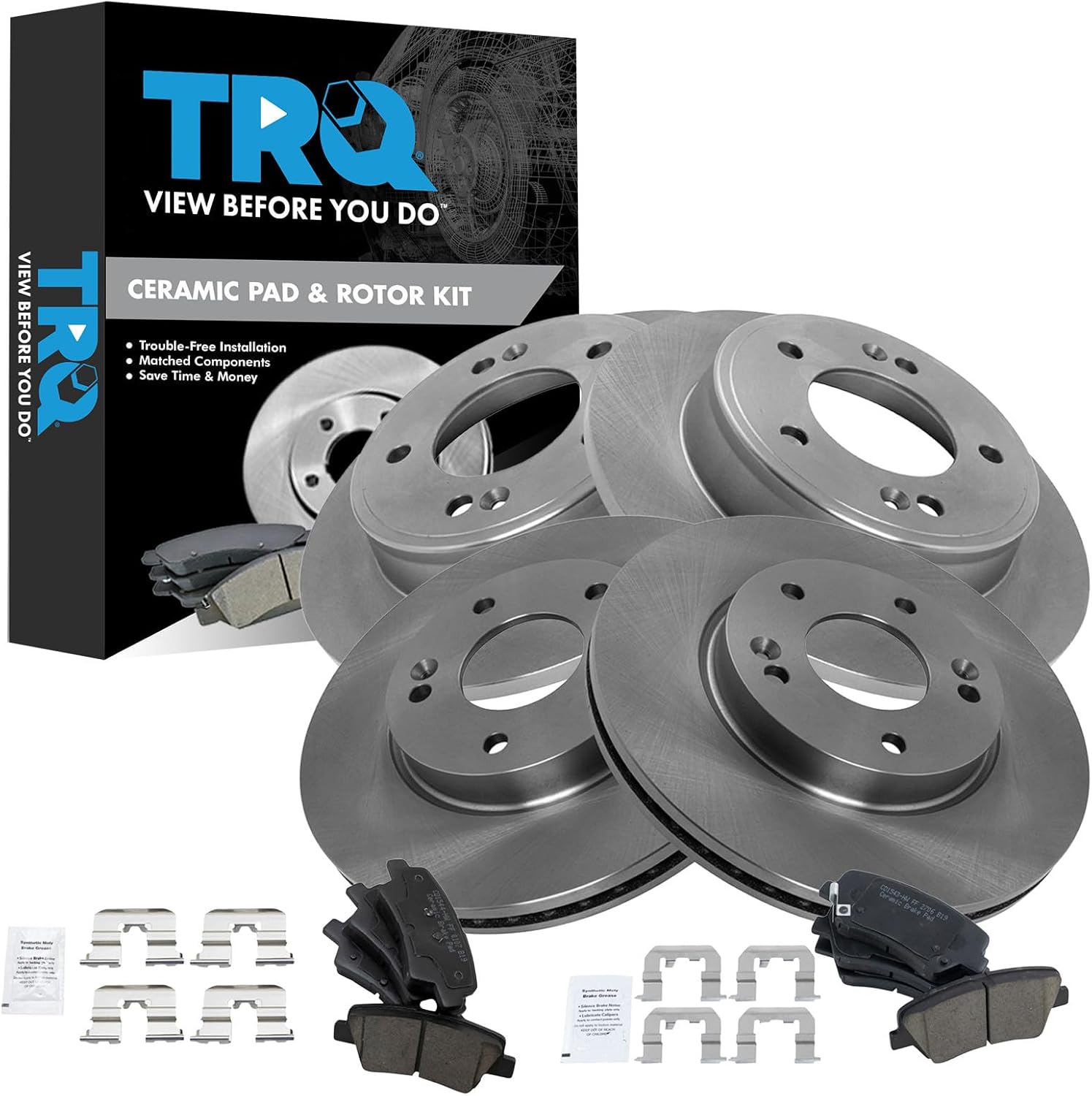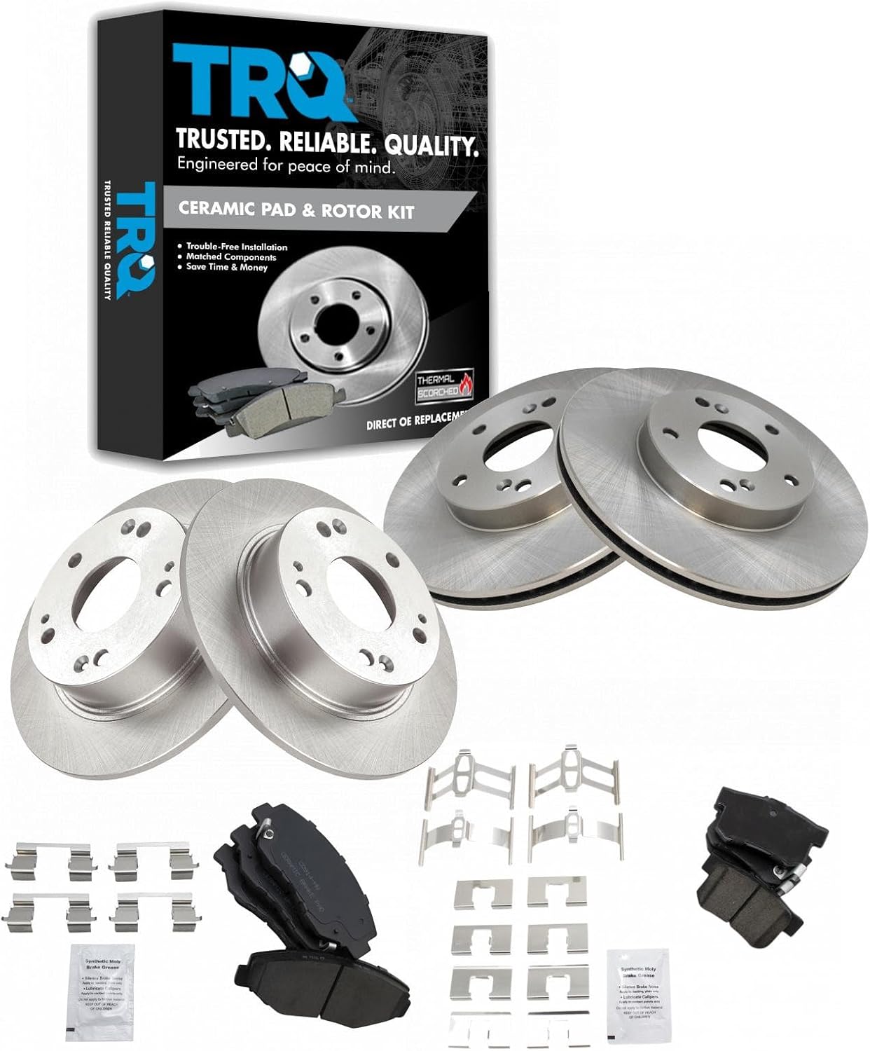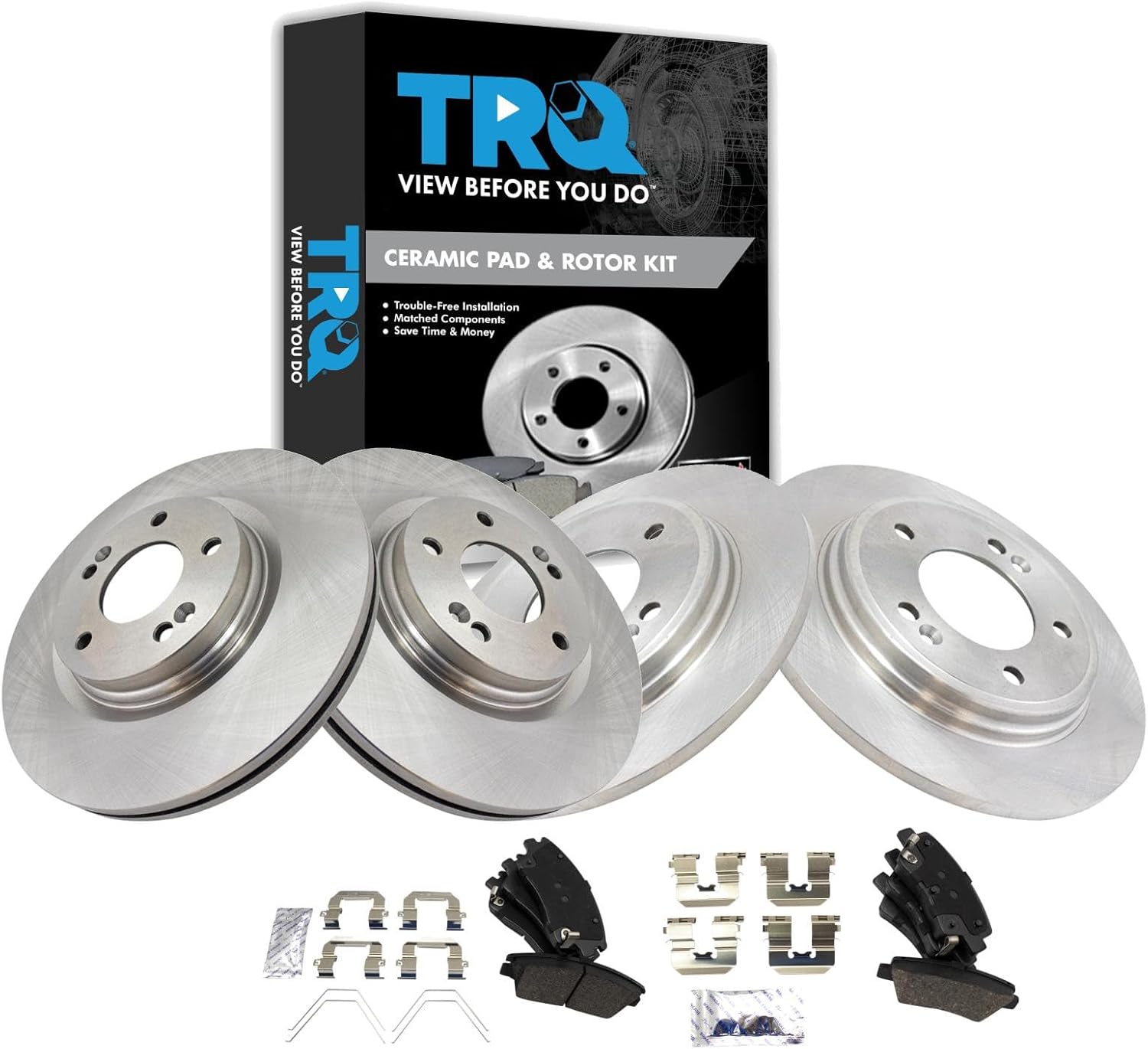 Ceramic Brake Pad & Rotor KitKit Includes(1) Front Ceramic Brake Pad Set(1) Rear Ceramic Brake Pad Set(2) Front Brake Rotors(2) Rear Brake Rotors11.69 in. (297mm) Front Brake Rotor Diameter11.93 in. (303mm) Rear Brake Rotor DiameterFitmentMazda CX-5 2016-18 - Front & Rear 2019-21 - Grand Touring Front & Rear 2019-21 - Sport Front & Rear 2019-21 - Touring Front & Rear 2021 - Carbon Edition Front & RearProduct AttributesFriction Material Composition: CeramicFront Brake Rotor Diameter: 11.69 in. (297mm)Rear Brake Rotor Diameter: 11.93 in. (303mm)Wheel Lug Count: 5 LugBrake Pad Friction Material: CeramicBrake Pad Bonding Type: Premium PosiRear Brake Rotor Venting Type: SolidFront Brake Rotor Venting Type: VentedProduct Features Positive Molded - Less dust resulting in clean wheels G3000 Casting Alloy - Reduced noise and improved wear resistance Application Specific Design - Extended service life, no modificationsItem DetailsTRQ brake kits are designed to restore your brake system to like-new performance. TRQ brake pads are positive molded, thermal scorched, chamfered, and utilize a multi-layer shim for enhanced performance and service life. TRQ rotors have a non-directional finish that reduces the break-in period for new rotors as well as reducing vibrations throughout the rotor’s lifecycle. All products are fit and road-tested in our Massachusetts R&D facility to ensure we deliver on our promise of Trusted Reliable Quality.Reference Numbers120.45094121.45094126.45094SL126.45094SR127.45094L127.45094R128.45094L128.45094R320.4509444771574882600-80076604-8007677112DG77112DL922004RGS981008981008FZN981008P981008R982264982264FZN982264P982264RAX901484BD180544BD180685EBR901196BR901484EHT1623AHEHT1623HEHT1846HGBFT33251GBFT33251AJBR1745EVCK0Y13328ZK0Y13328ZAKAY02648ZKD4533251MA-8054MGD1846CHPRT6212YH566200P