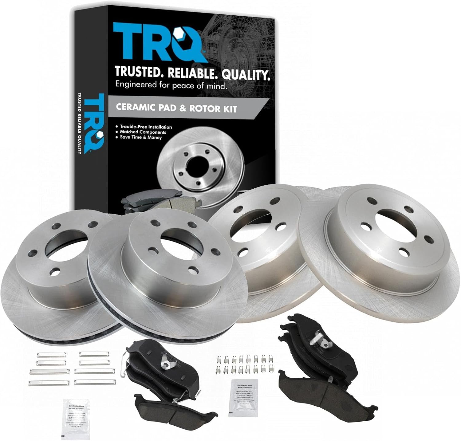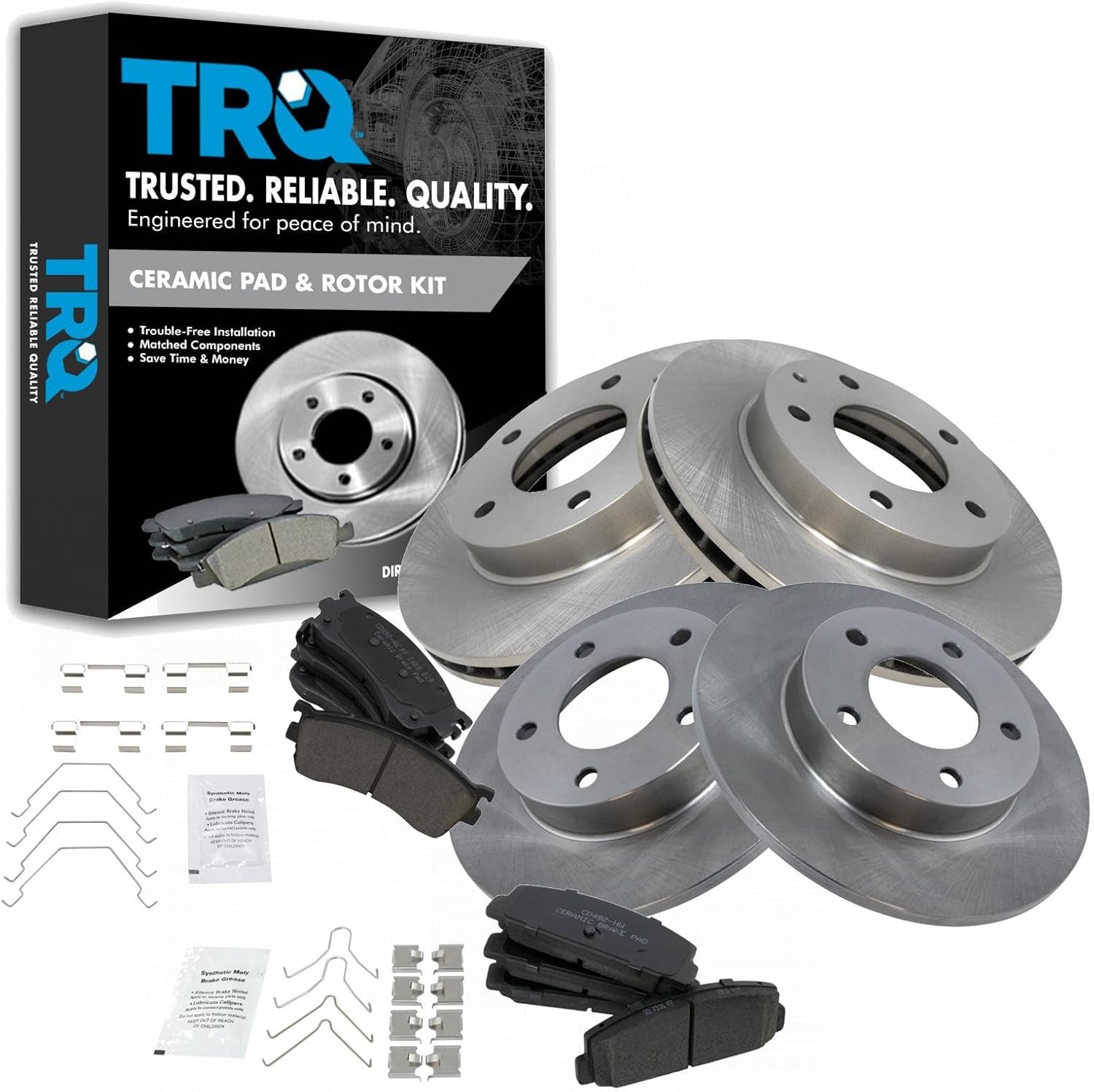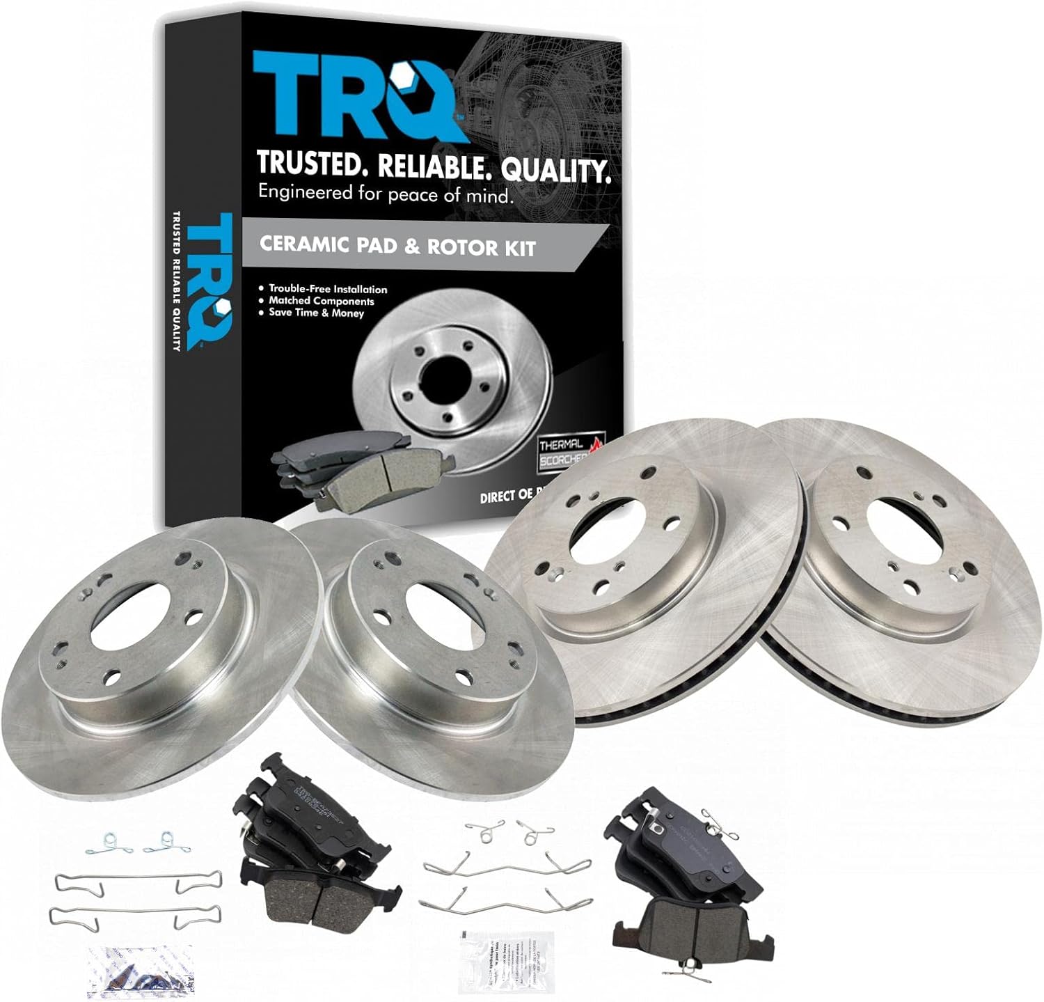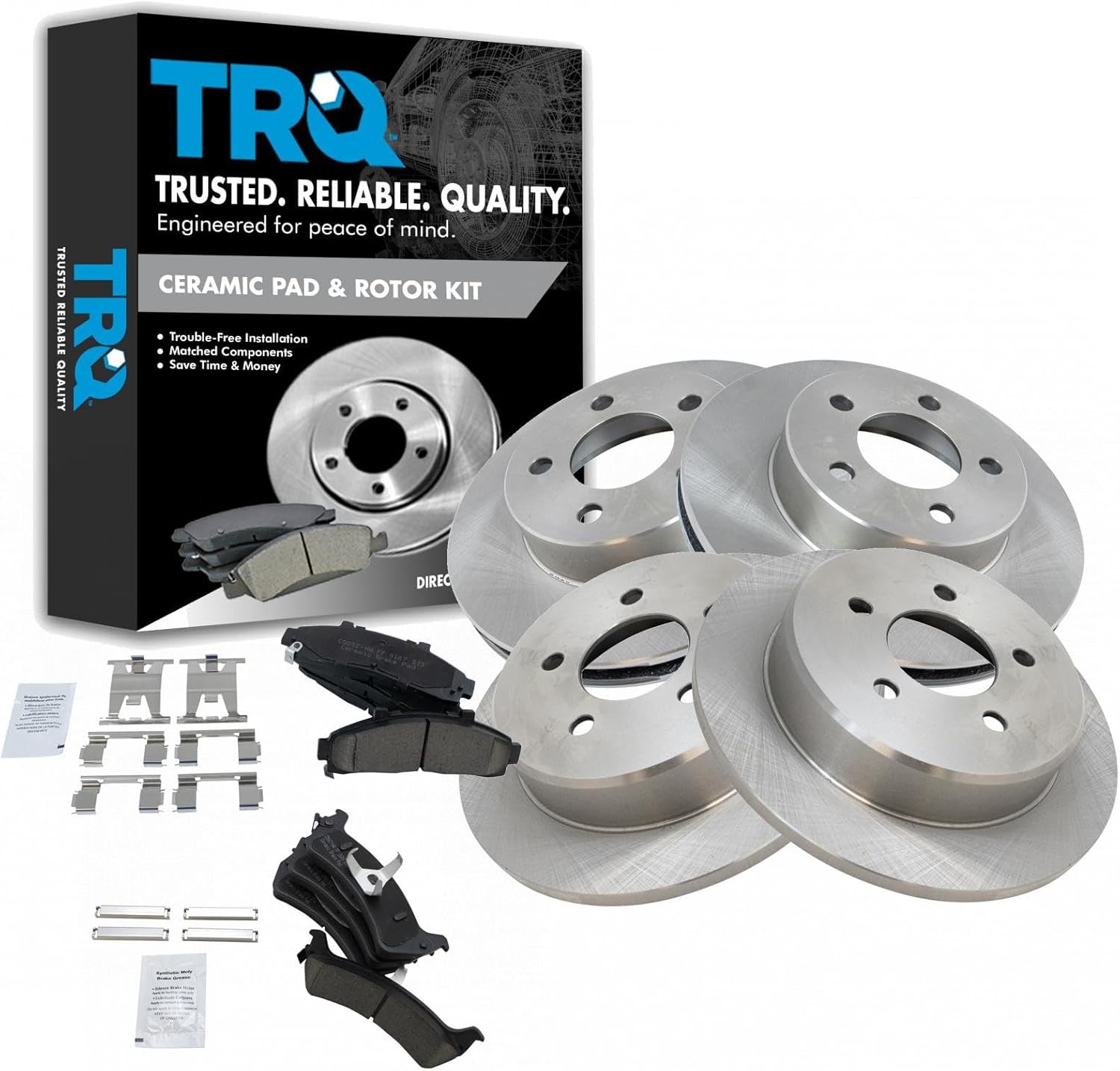 Ceramic Brake Pad & Rotor KitKit Includes(1) Front Ceramic Brake Pad Set(1) Rear Ceramic Brake Pad Set(2) Front Brake Rotors(2) Rear Brake Rotors11.69 in. (297mm) Front Brake Rotor Diameter11.93 in. (303mm) Rear Brake Rotor DiameterFitmentMazda CX-5 2016-18 - Front & Rear 2019-21 - Grand Touring Front & Rear 2019-21 - Sport Front & Rear 2019-21 - Touring Front & Rear 2021 - Carbon Edition Front & RearProduct AttributesFriction Material Composition: CeramicFront Brake Rotor Diameter: 11.69 in. (297mm)Rear Brake Rotor Diameter: 11.93 in. (303mm)Wheel Lug Count: 5 LugBrake Pad Friction Material: CeramicBrake Pad Bonding Type: Premium PosiRear Brake Rotor Venting Type: SolidFront Brake Rotor Venting Type: VentedProduct Features Positive Molded - Less dust resulting in clean wheels G3000 Casting Alloy - Reduced noise and improved wear resistance Application Specific Design - Extended service life, no modificationsItem DetailsTRQ brake kits are designed to restore your brake system to like-new performance. TRQ brake pads are positive molded, thermal scorched, chamfered, and utilize a multi-layer shim for enhanced performance and service life. TRQ rotors have a non-directional finish that reduces the break-in period for new rotors as well as reducing vibrations throughout the rotor’s lifecycle. All products are fit and road-tested in our Massachusetts R&D facility to ensure we deliver on our promise of Trusted Reliable Quality.Reference Numbers120.45094121.45094126.45094SL126.45094SR127.45094L127.45094R128.45094L128.45094R320.4509444771574882600-80076604-8007677112DG77112DL922004RGS981008981008FZN981008P981008R982264982264FZN982264P982264RAX901484BD180544BD180685EBR901196BR901484EHT1623AHEHT1623HEHT1846HGBFT33251GBFT33251AJBR1745EVCK0Y13328ZK0Y13328ZAKAY02648ZKD4533251MA-8054MGD1846CHPRT6212YH566200P