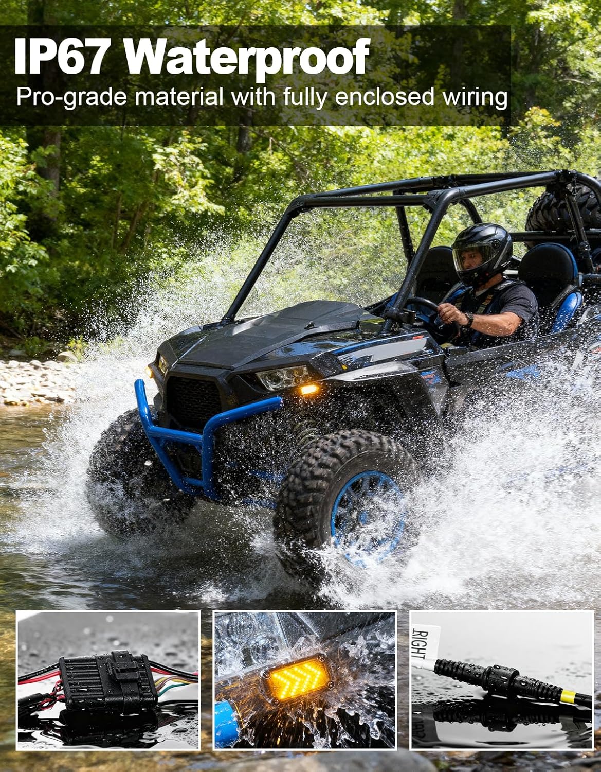 • Plug & Play Installation: Pre-wired system and no wire splicing required, with extended cables. Our UTV street legal kit fits 2-seater, 4-seater, and 6-seater vehicles perfectly, no extra extensions needed. The pre-assembled harness and labeled light connector positions make installation quick and easy