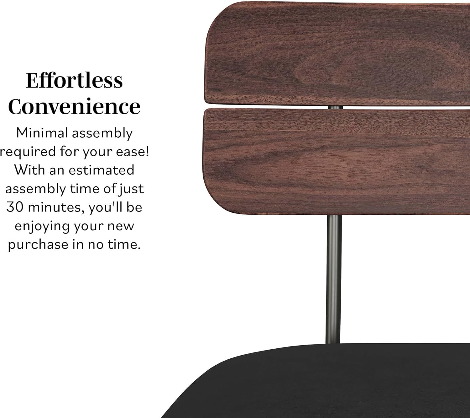 Whether it’s in your apartment, condo, or forever home, this modern counter stool lends a fresh look with its mixed-material design and comfortable seating. A curved wooden backrest ensures you have support while you eat, chat, or meal prep, and a foam-filled upholstered cushion with a fire and water-resistant fabric cover lends added comfort and impressive function. Its warp-resistant MDF and sanded black metal build means this sturdy stool will pass the test of time, and a quick, 20-minute assembly time helps you set up your dream dining space in no time, whether you’ve got one or four of these pieces.