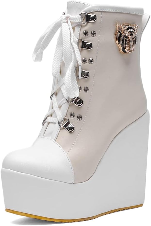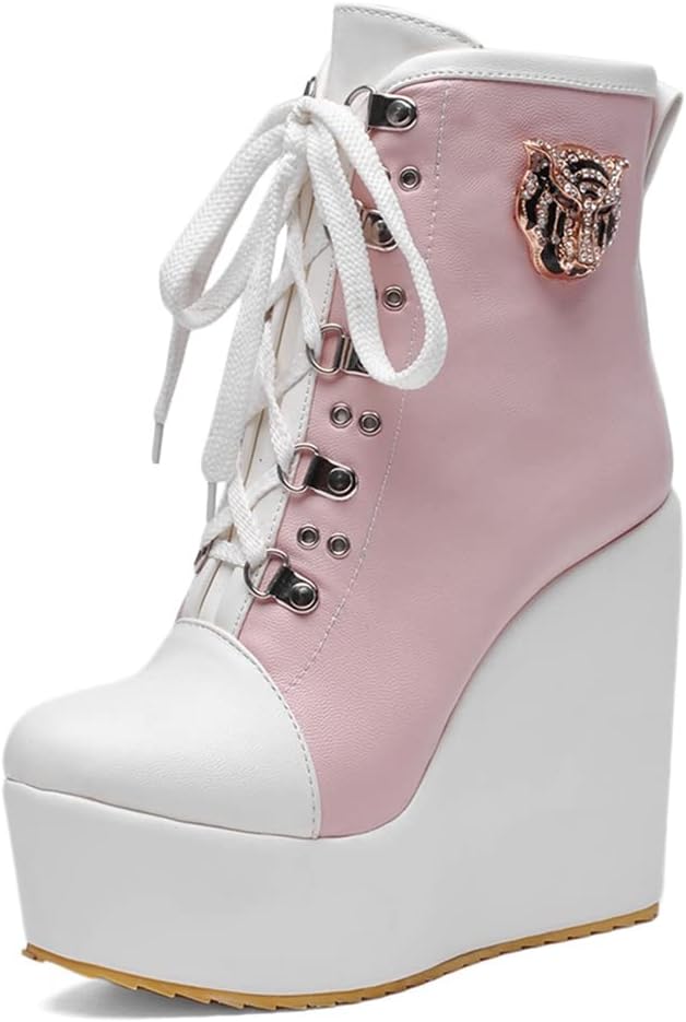 Women's Round Toe Wedge Platform Dress Ankle Boots Lace Up Chunky High Heels Dressy Short BootiesSize Chart:Size 4 US = EU34 = Heel to Toe 22.0cm/8.66"Size 4.5 US = EU35 =Heel to Toe 22.5cm/8.86"Size 5 US = EU36 = Heel to Toe 23cm/9.06"Size 6 US = EU37 = Heel to Toe 23.5cm/9.25"Size 7 US = EU38 = Heel to Toe 24cm/9.45"Size 8 US = EU39 = Heel to Toe 24.5cm/9.65"Size 8.5 US = EU40 = Heel to Toe 25cm/9.84"Size 9 US = EU41 = Heel to Toe 25.5cm/10.04"Size 10 US = EU42 = Heel to Toe 26cm/10.24"Size 11 US = EU43 = Heel to Toe 26.5cm/10.43"Use your length and width measurements to find your shoe size on the above size chart. If your foot is fat or wide, please select a bigger size up.PERFECT ITEM FEATURES:☛Item Type: Ankle-boots☛Main Material: High Quality Leather upper; Comfort Velvet Lining; Non-skid Rubber sole.☛Closure_type: Lace Up☛toe_style: Round-toe☛Heel Height: Heel Height 4.92inch☛Width: Medium (BM)☛Season: Spring/Autumn/Winter☛Color: Multiple colors optional☛Occasion Lifestyle: Fashion,Classic,Casual.