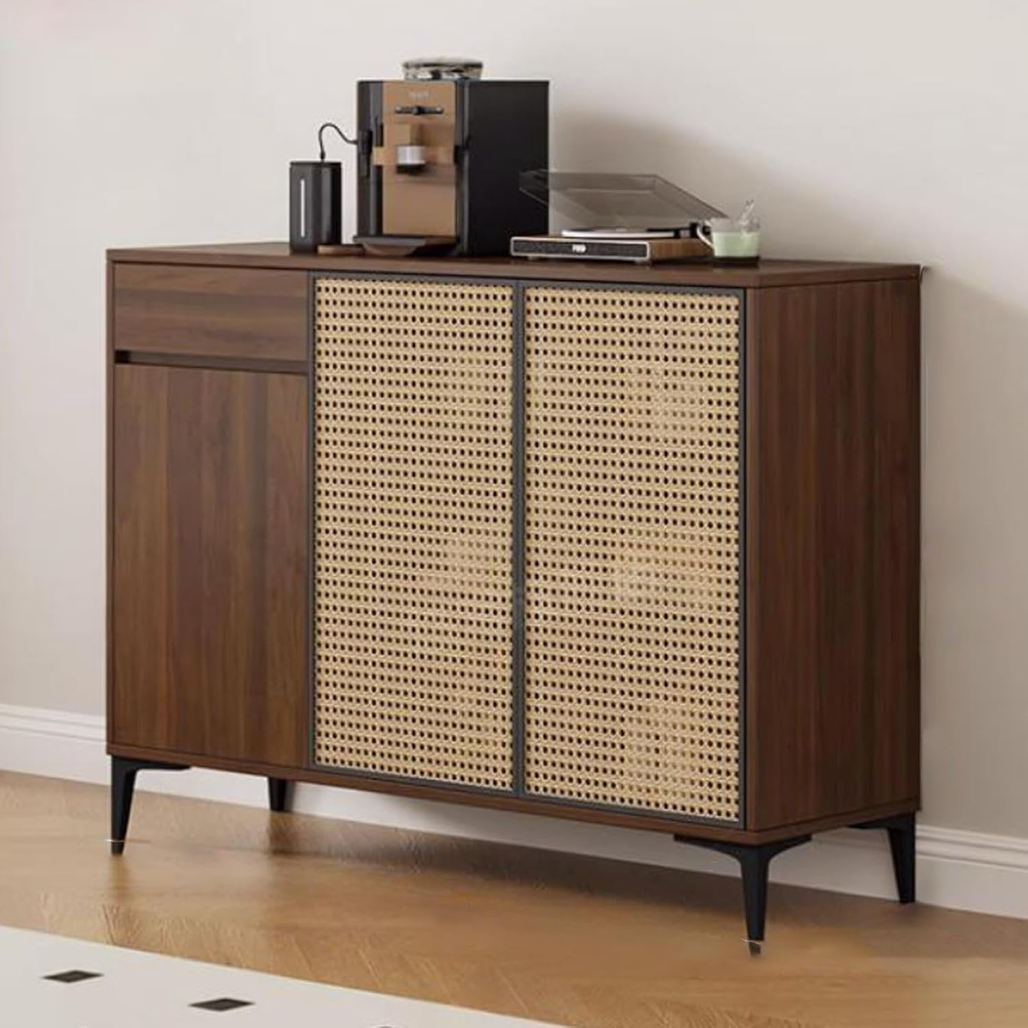 The natural rattan doors of the GUAWJRZDP Sideboard Buffet Cabinet have an exquisite and tightly woven texture, exuding a timeless vintage charm. The warm and rustic touch adds a soft and natural feel, while also being dustproof, beautiful, and practicalMore than a sideboard, this piece doubles as a storage cabinet, small wine cabinet, and tea cabinet. Its retro rattan details complement tableware, wine bottles, or tea sets, turning daily storage into a stylish display that nods to classic design◆ Product parameters:Product Name: Rattan sideboard, storage cabinet, vintage Kitchen Pantry Storage Cabinet BuffetMaterial: Wood + rattan weavingColor: Black , Brown , Black+BrownSize: 80x40x96cm/31.4x15.7x37.7'',105x40x96cm/41.3x15.7x37.7'',120x40x96cm/47.2x15.7x37.7'',140x40x96cm/55.1x15.7x37.7'',160x40x96cm/62.9x15.7x37.7''Assembly method: Self-assemblySuitable scenarios: Kitchen, living room, entryway, bedroom, dining room◆ Note:1. There may be some differences between the picture and the product due to display and lighting, please refer to the actual product.2. Because it is processed by hand, the finished product usually has an error of 1-2 cm, please understand.